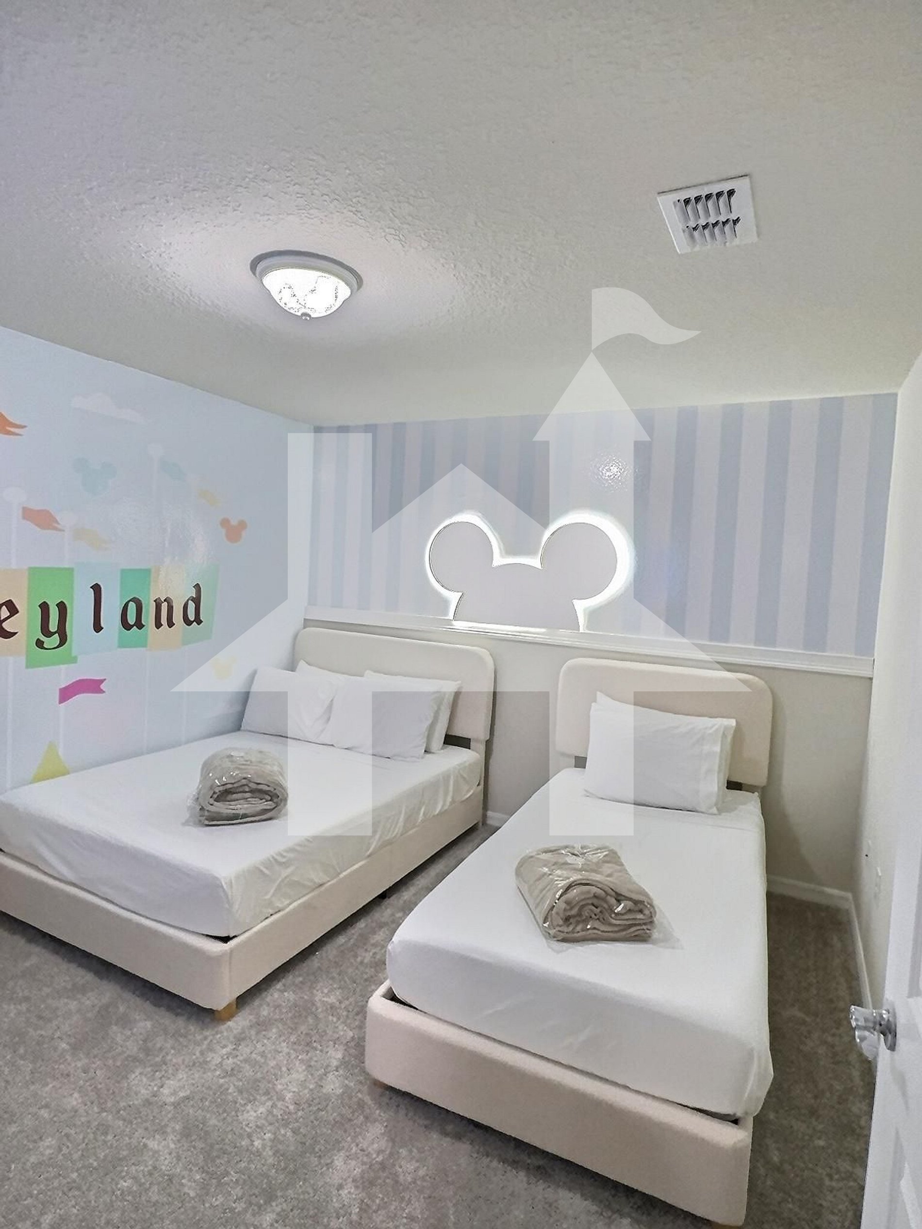 Brand new luxury home at Windsor Cay Resort, just 15–20 minutes from Disney. This elegant 5BR villa features five private suites plus a half bath, a private pool, premium outdoor BBQ area, Mario-themed game room, and a private movie theater. Meticulously decorated with modern design and high-end finishes, it offers space, comfort, and privacy for families and groups seeking a true resort-style stay with professional management and 24/7 support.