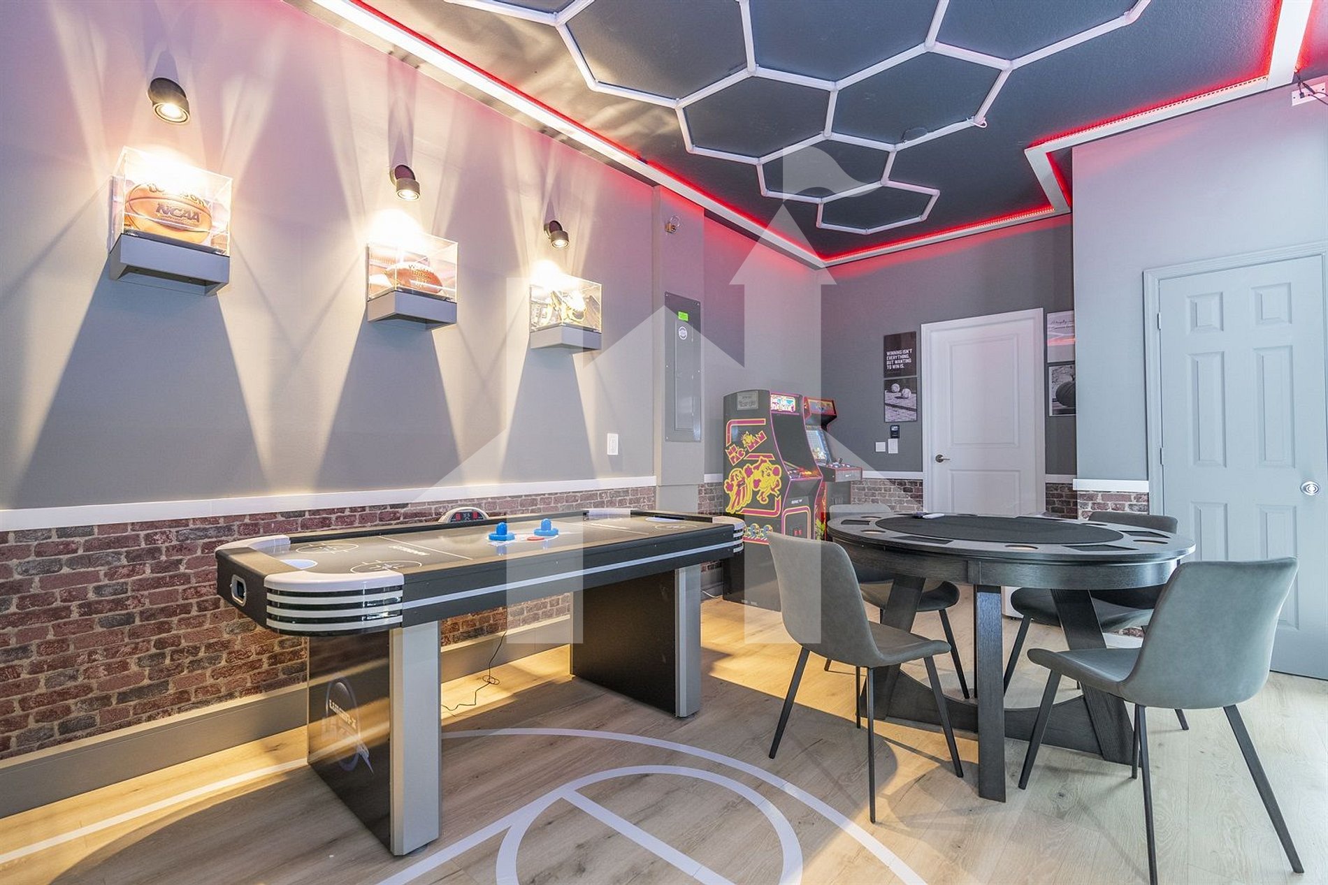 This 5-bedroom villa is located inside the renowned ChampionsGate Resort, about 10 miles from Disney and close to Orlando’s top attractions. The home features a private screened pool and spa, spacious two-level layout, and full access to the Oasis Club amenities. Perfect for families and groups seeking comfort, privacy, and a true resort lifestyle.