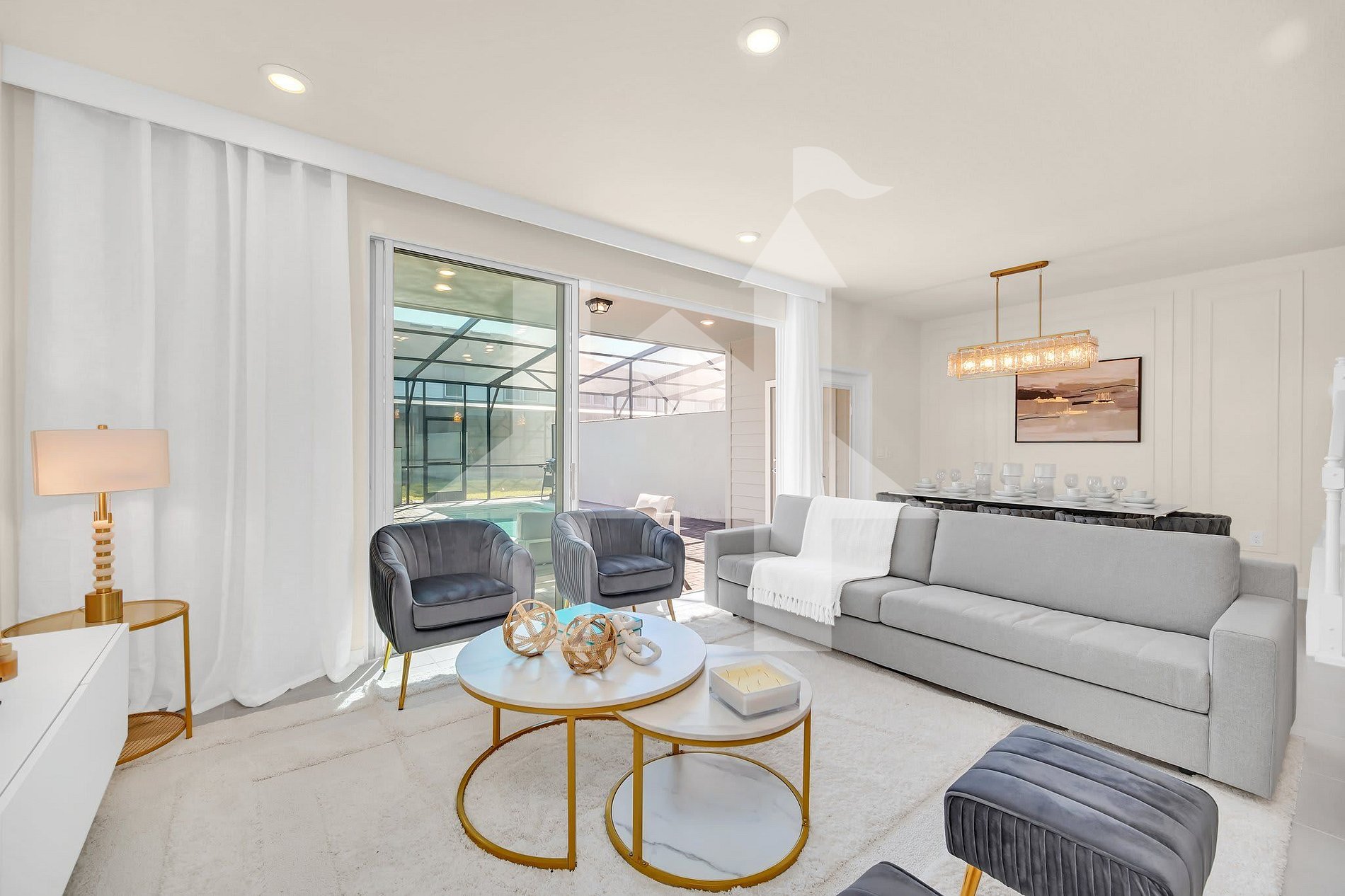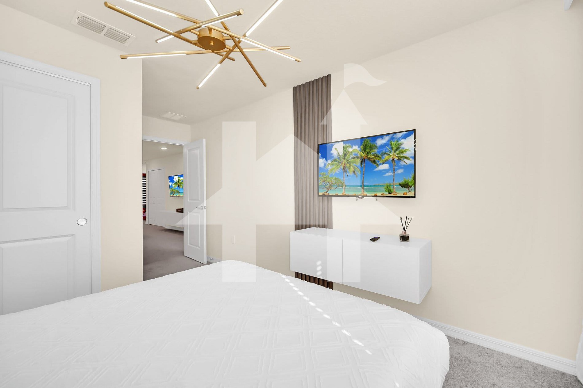This stylish 5-bedroom home is located at Windsor Island Resort, one of Orlando’s newest and most complete vacation communities. Featuring modern décor, spacious living areas, and a private pool, it’s ideal for families and groups seeking comfort, entertainment, and easy access to top attractions.