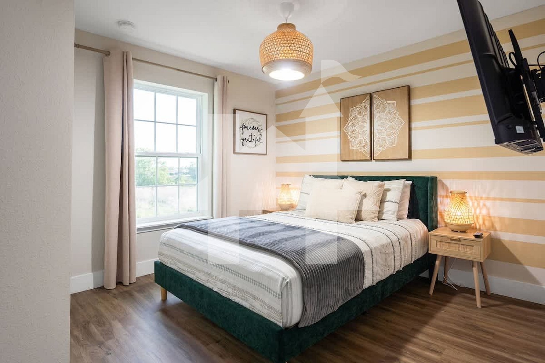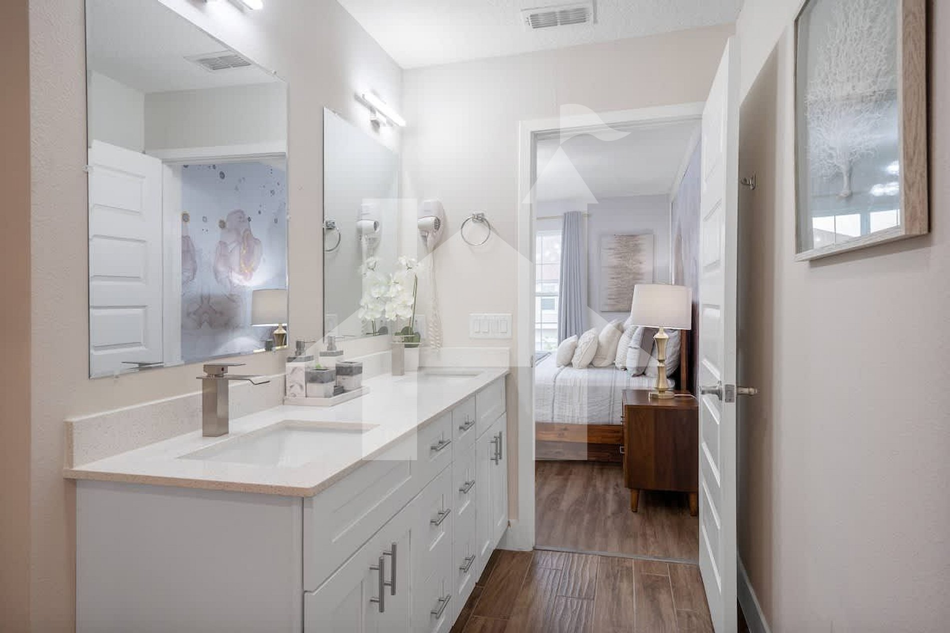 - Elegant master suite with king-size bed and private bathroom
