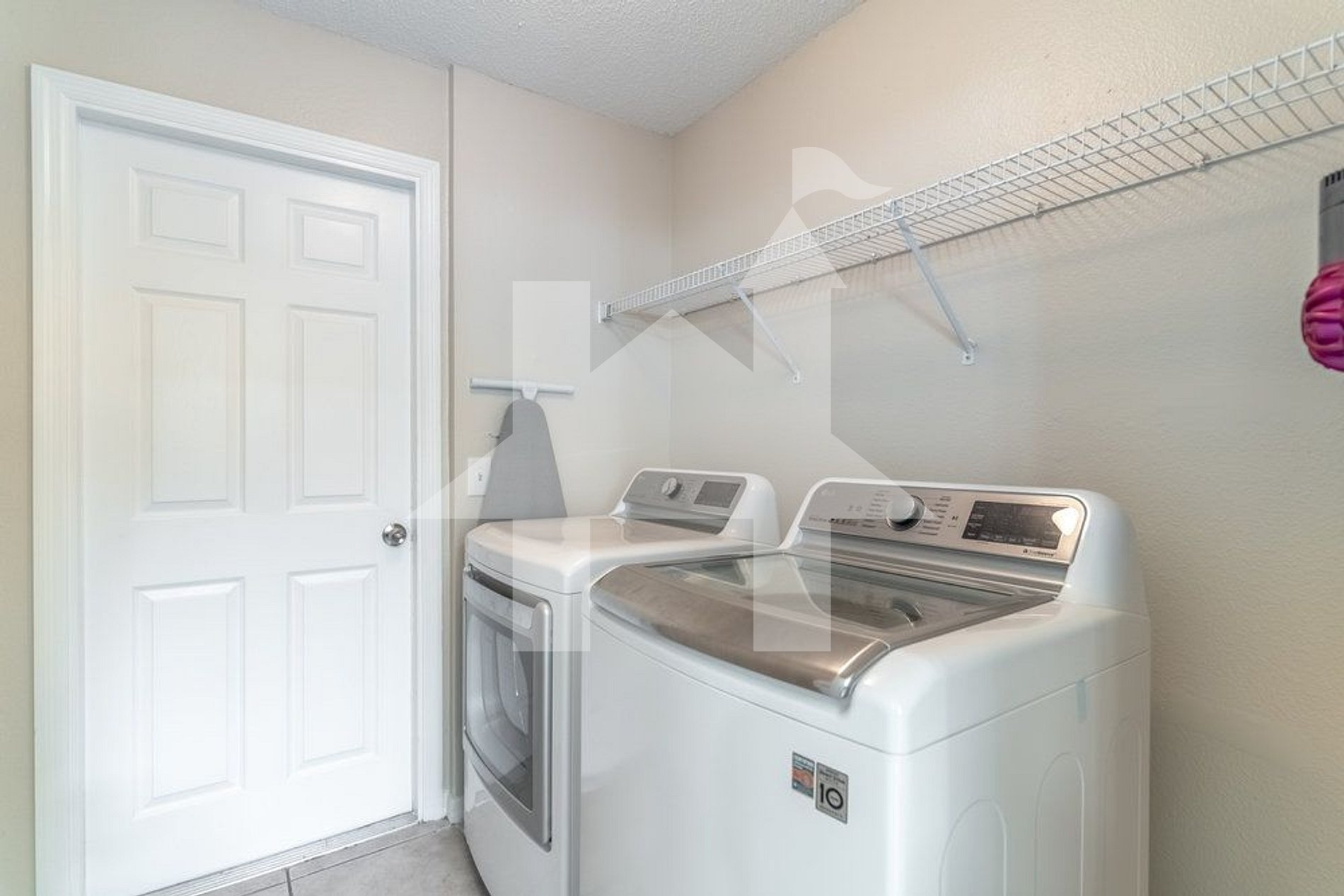• Laundry room with washer, dryer, iron, and ironing board