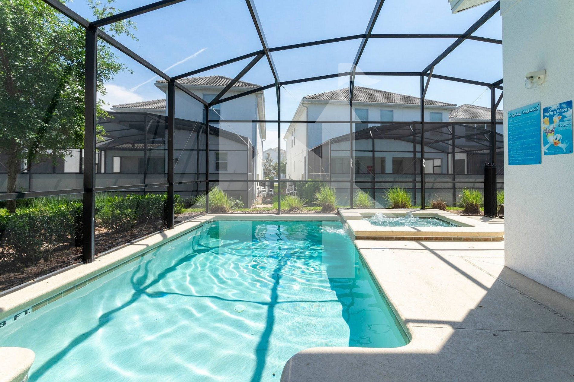 Guests have exclusive access to the entire home, including the private pool and spa, plus access to Storey Lake Resort amenities such as the clubhouse, community pool, and fitness center.