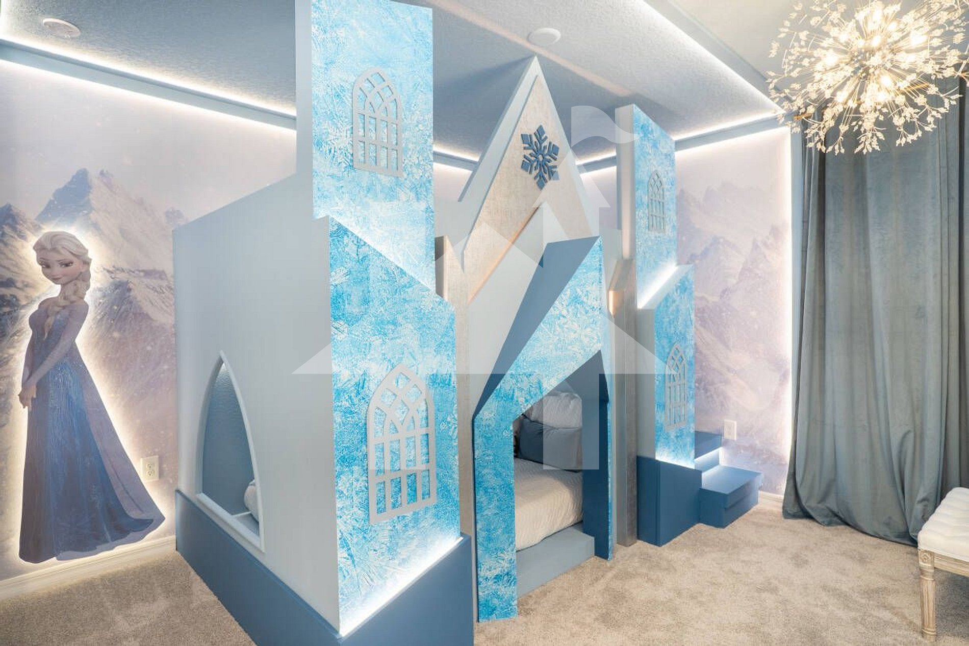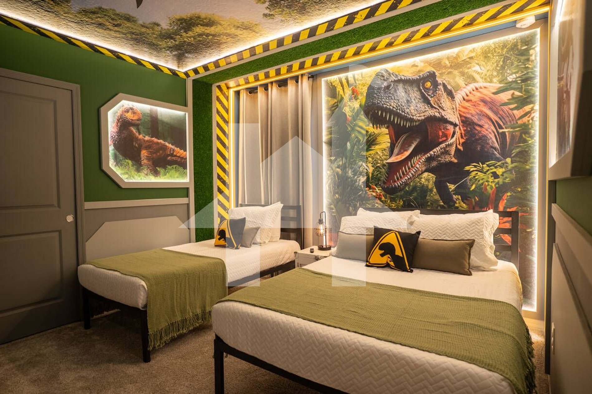 Perfect for large groups, this 10-bedroom themed home in Windsor Cay combines space, fun, and comfort just minutes from Disney. Bedrooms inspired by Mario Bros, Frozen, Mickey, and Jurassic Park make the experience extra special for families with kids. The home features a private pool, fully equipped kitchen, Smart TVs, fast Wi-Fi, and spacious living areas designed for gathering together. Accommodating up to 26 guests, it’s the ideal setting for unforgettable Orlando vacations.