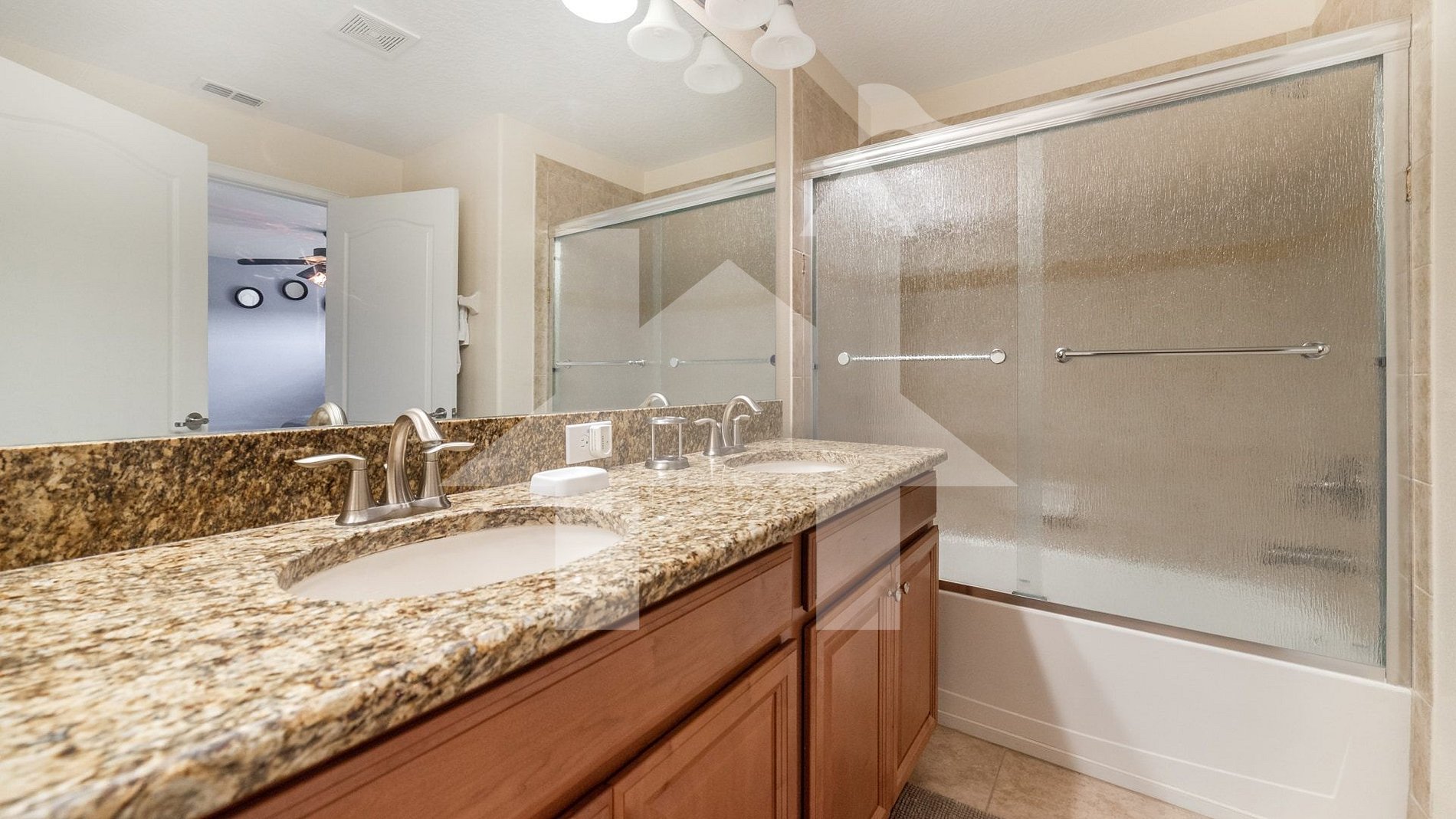 Full bathroom between the bedrooms