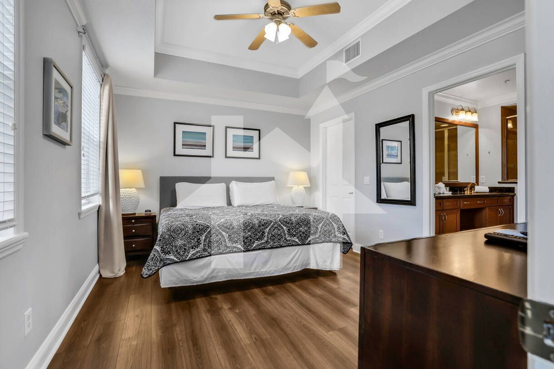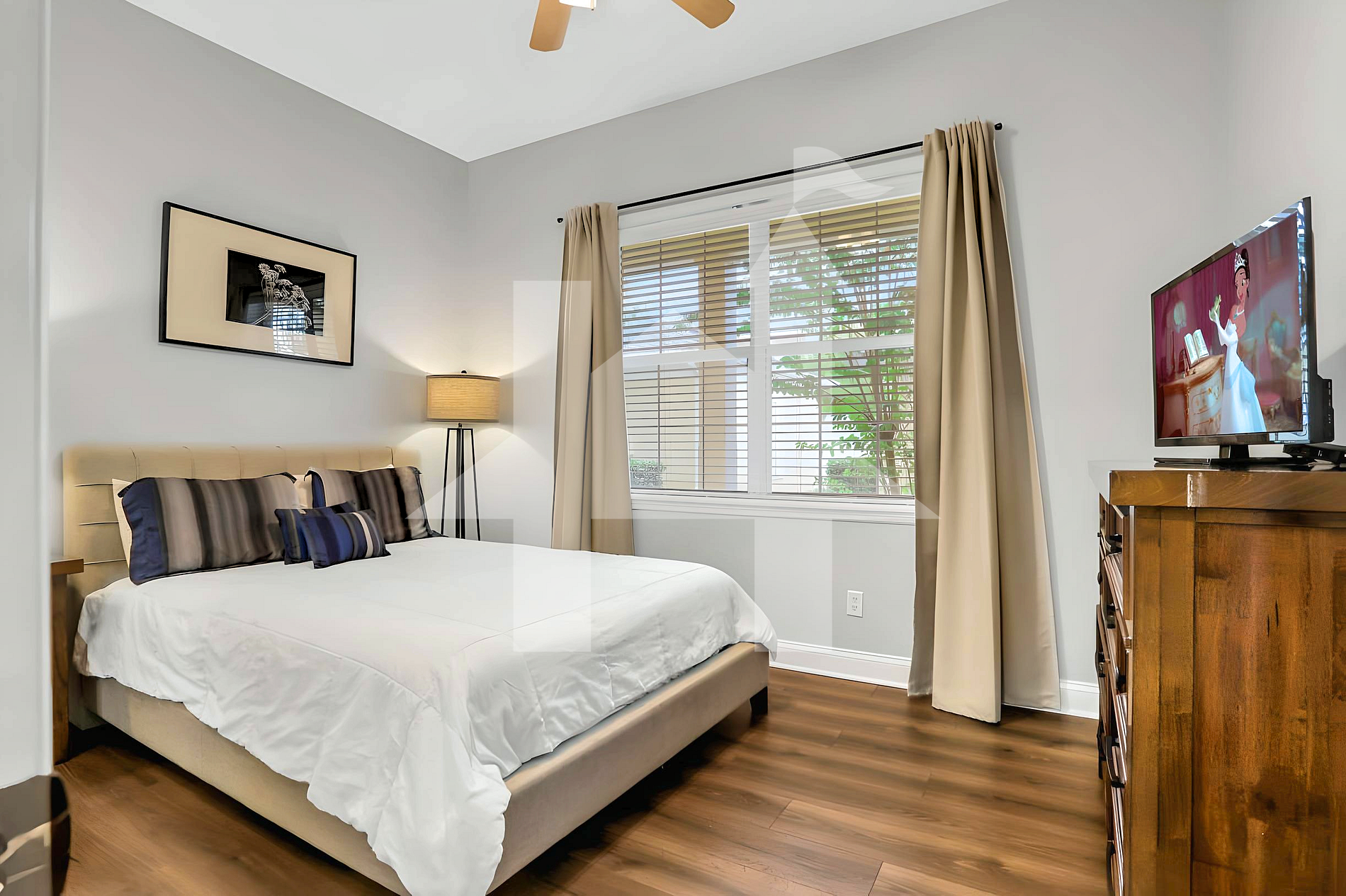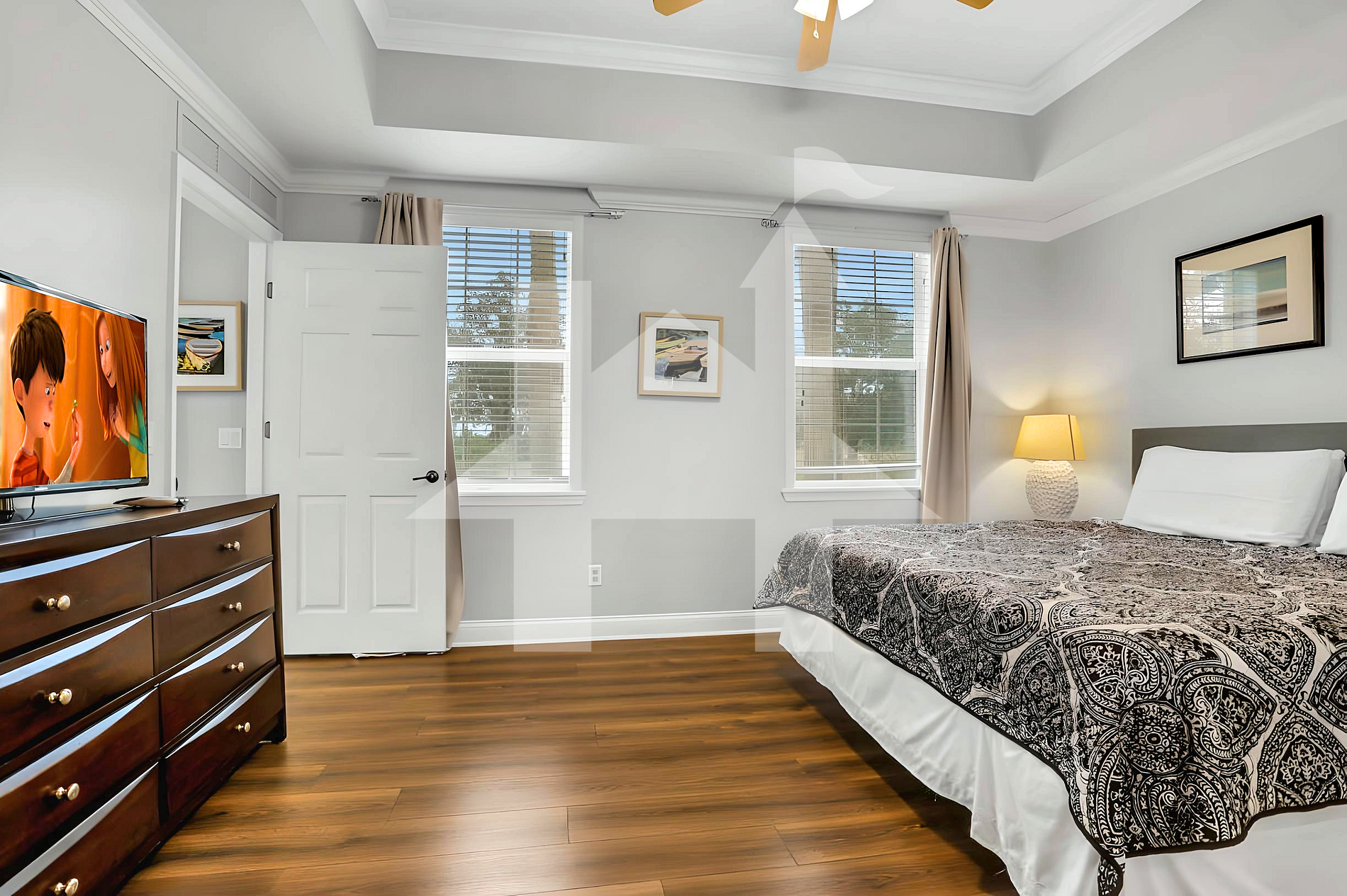 • Master Suite: King bed and TV