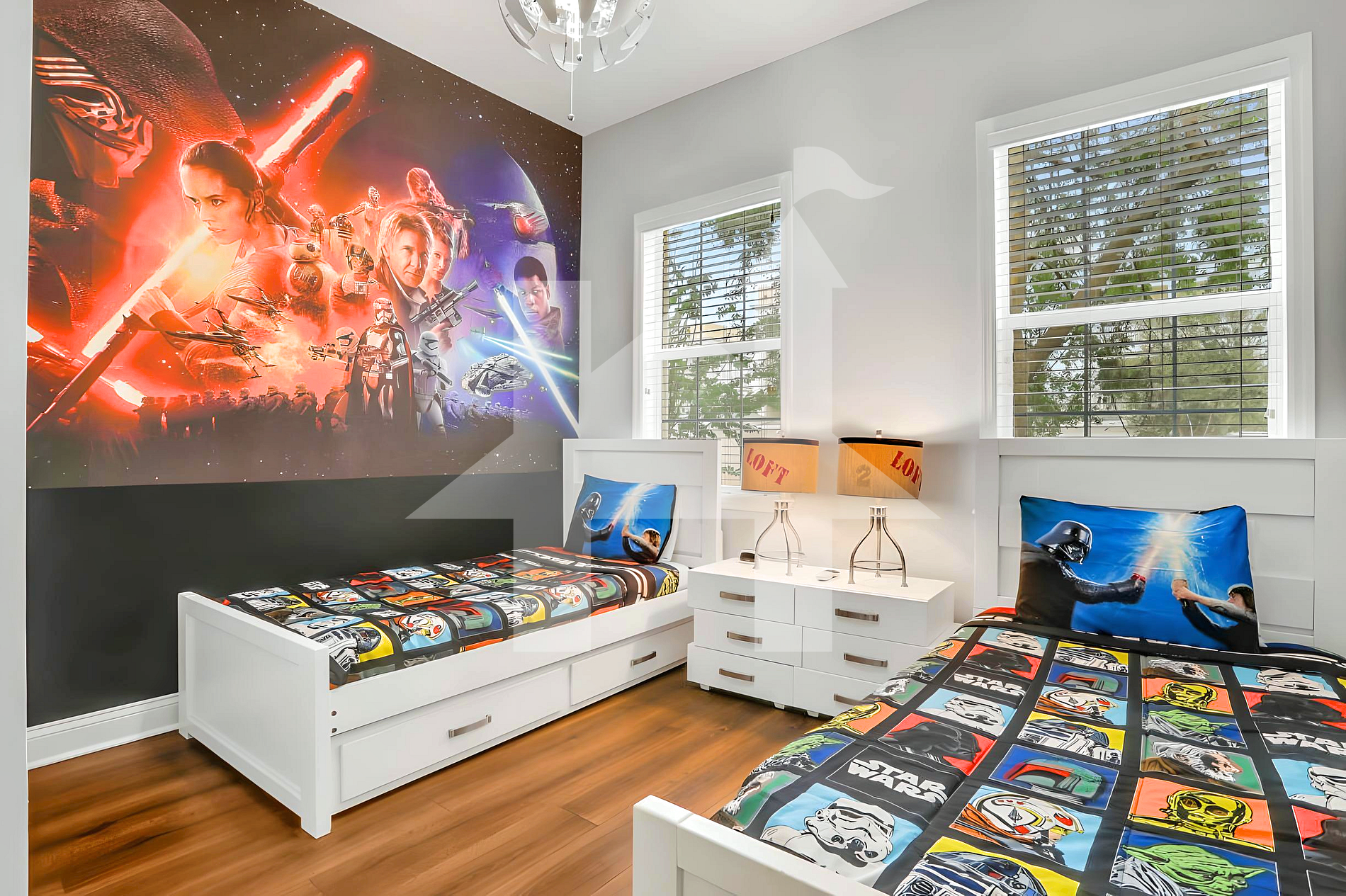 • Themed Bedroom: Two twin beds plus trundle and TV