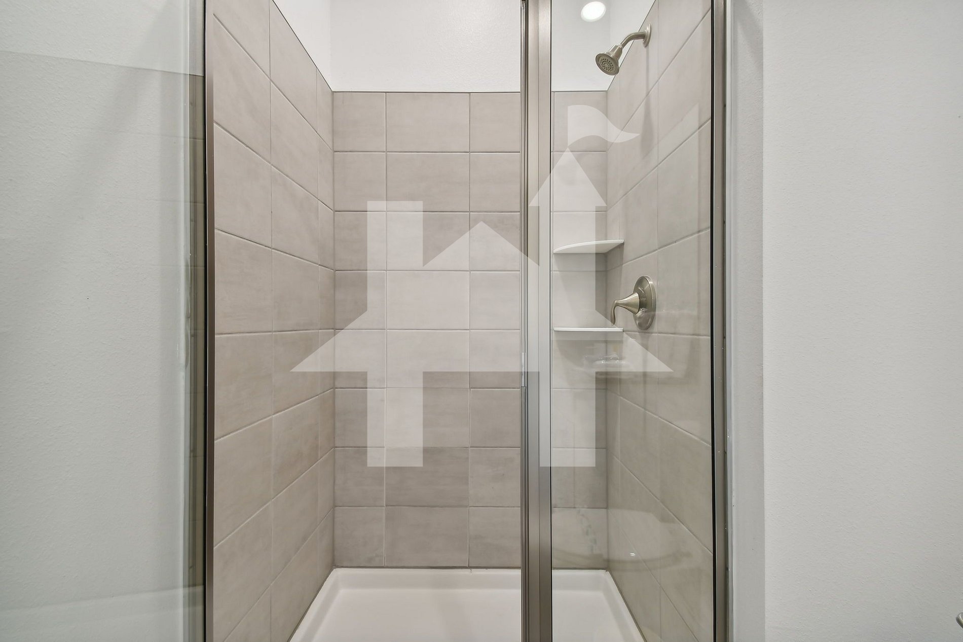 Master Suite 1 – King-size bed, 50-inch Smart TV, walk-in closet, and private bathroom with shower.