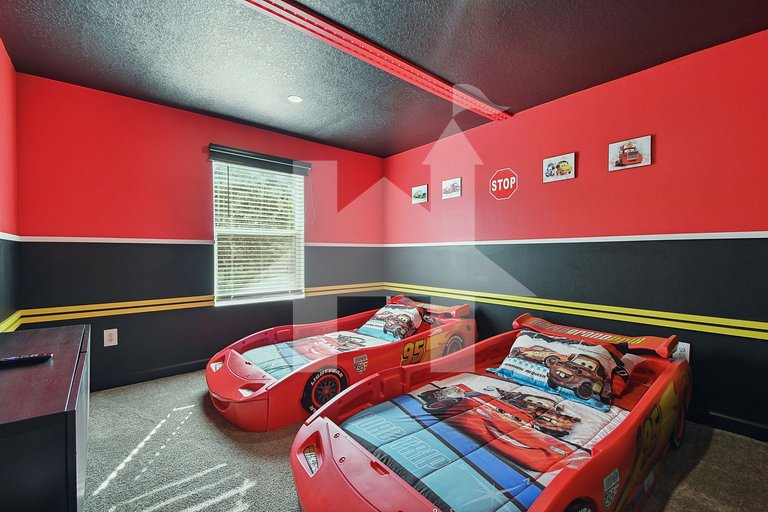 Cars Room – 2 twin beds, Smart TV, sharing a full bathroom