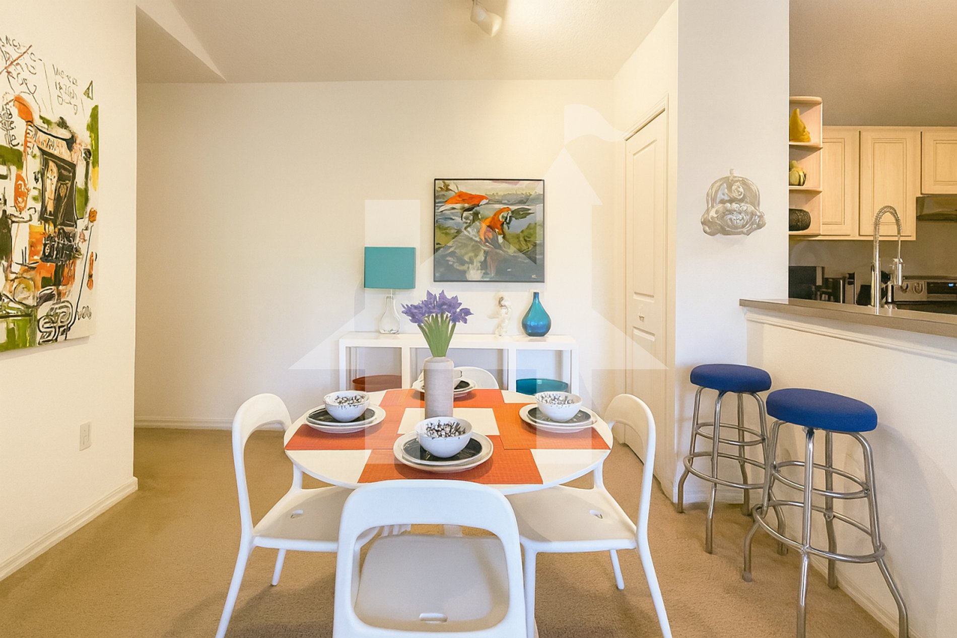 Fully equipped kitchen with bar stools, perfect for preparing meals
