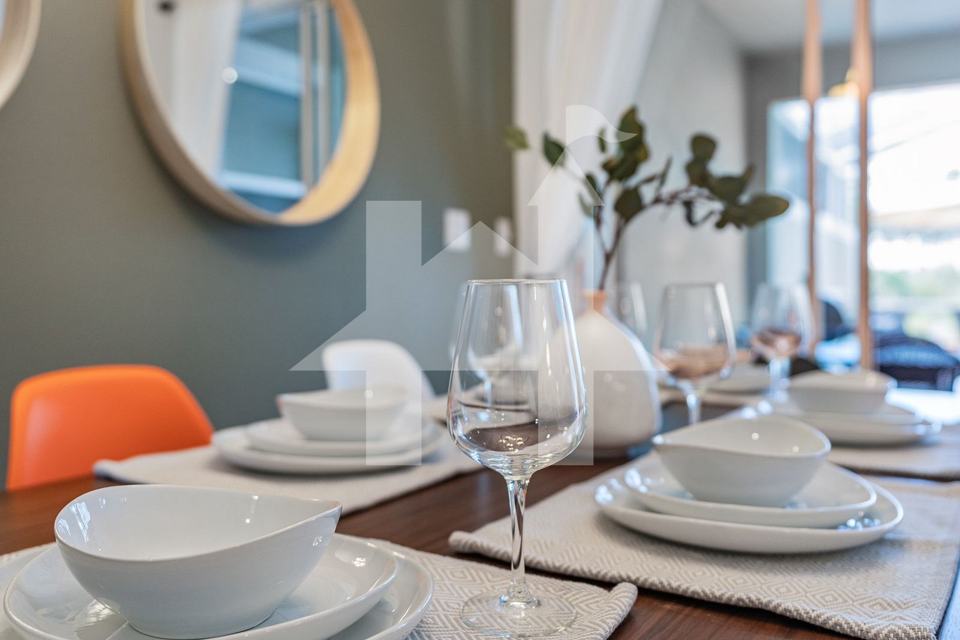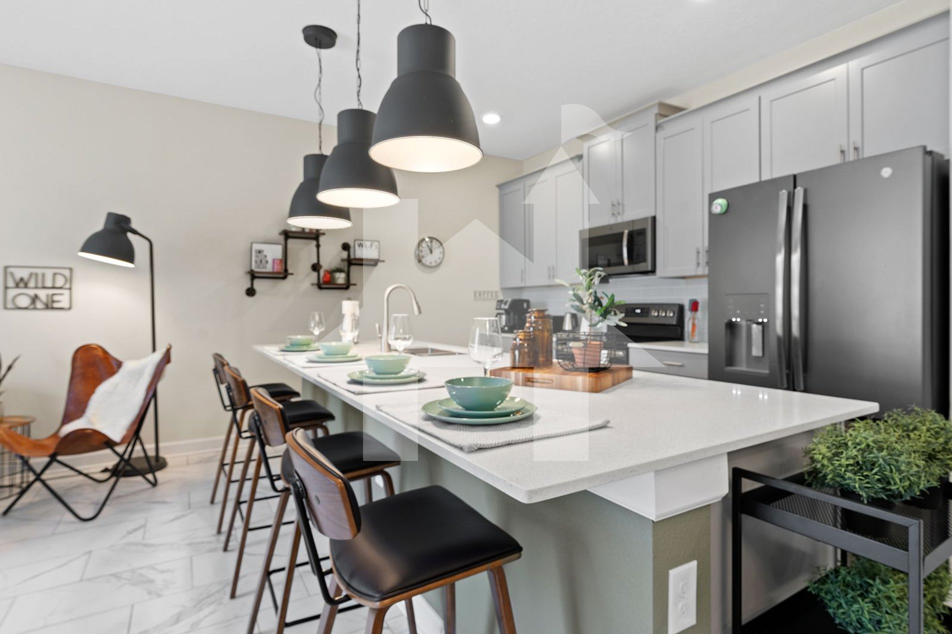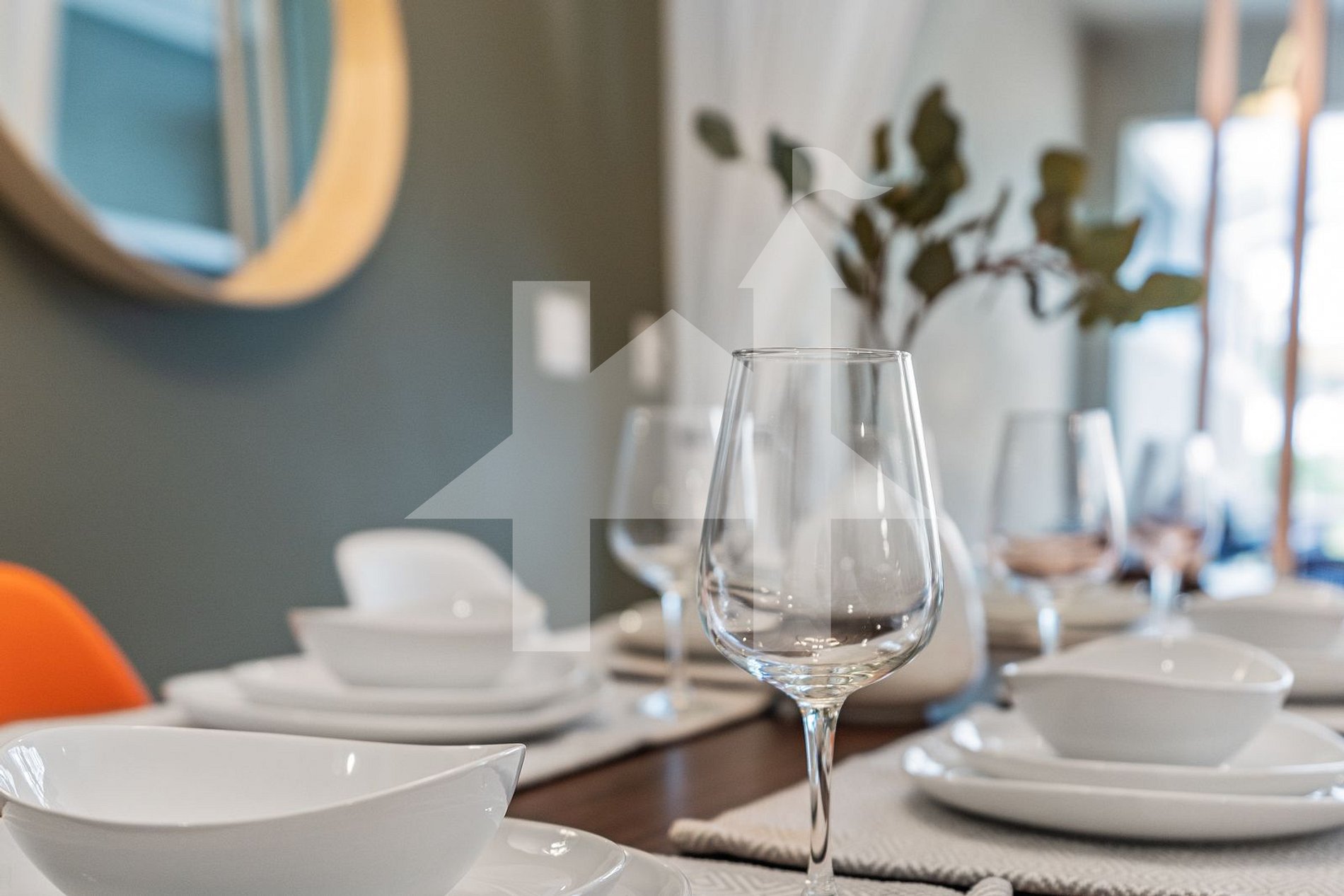 - Dining Room: Table for 6 people and a breakfast bar with 4 seats.
