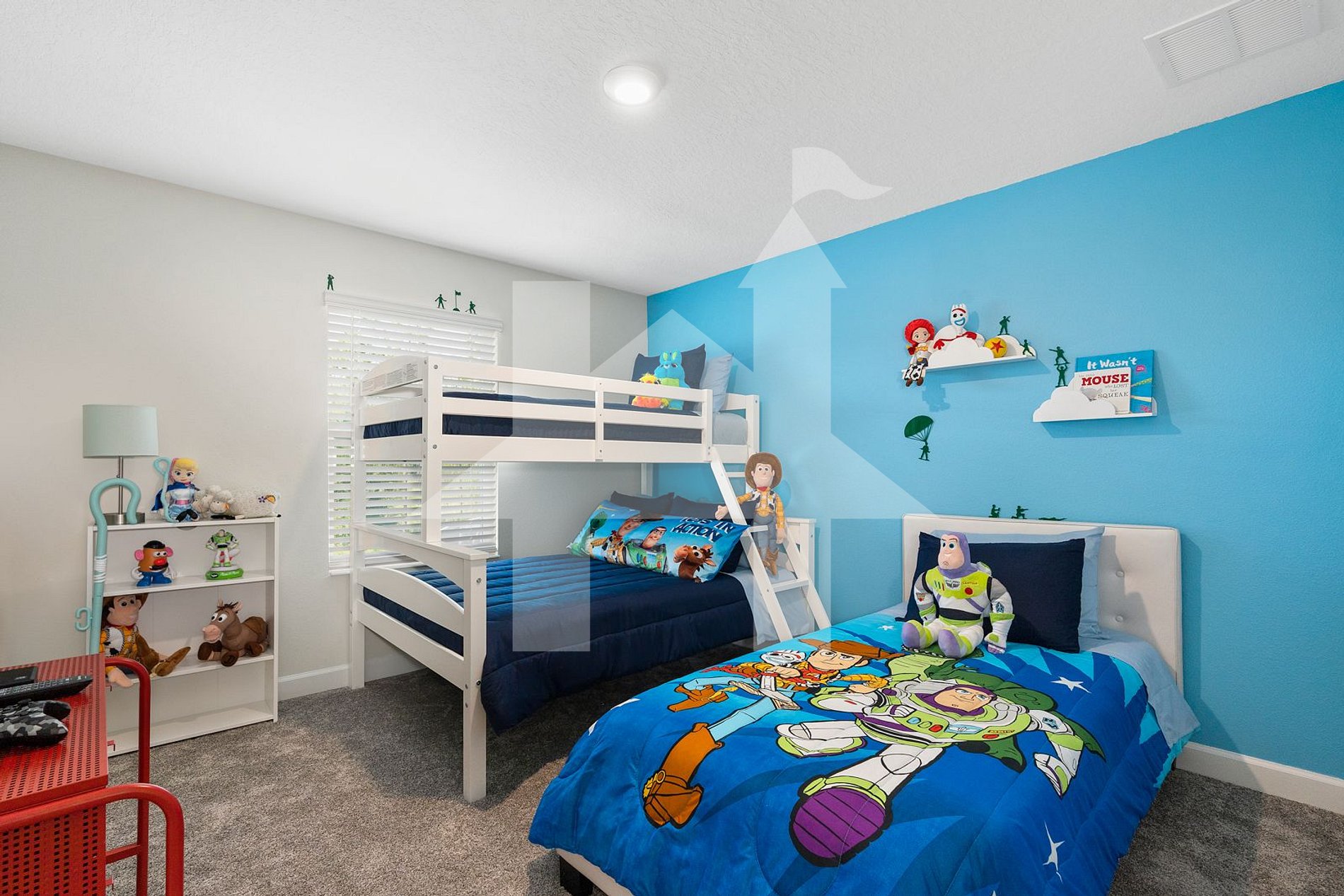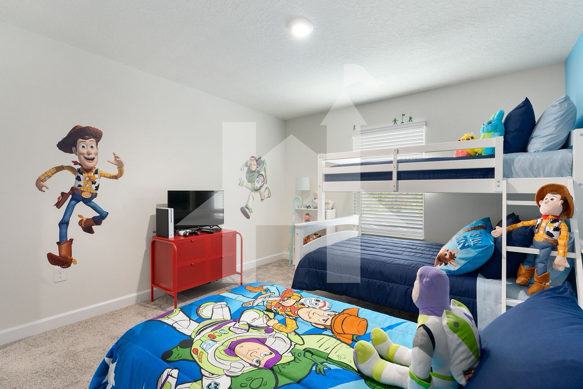 - Kids' Bedroom: Bunk bed (full over twin) and an additional twin bed, SMART TV, Xbox One gaming console.