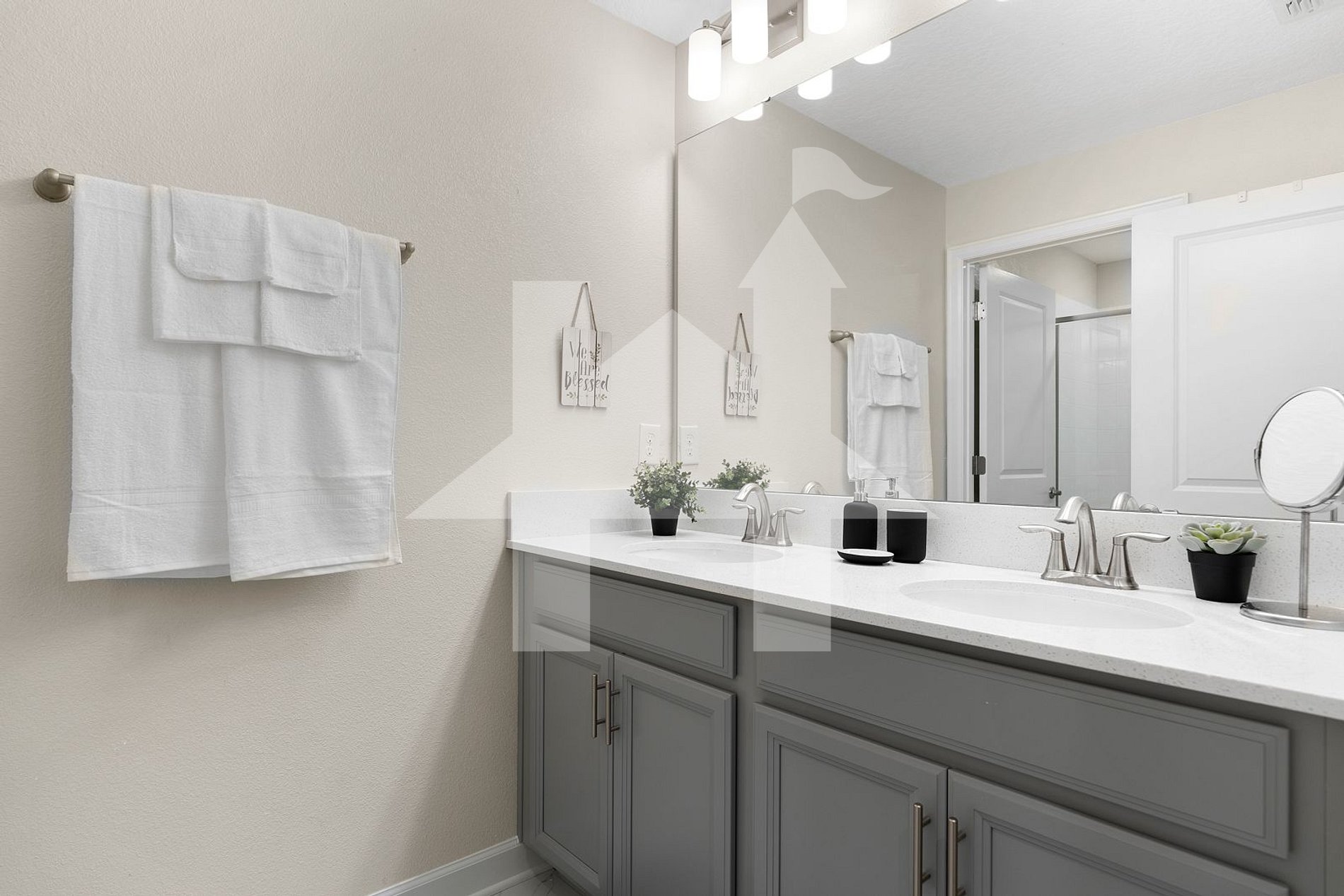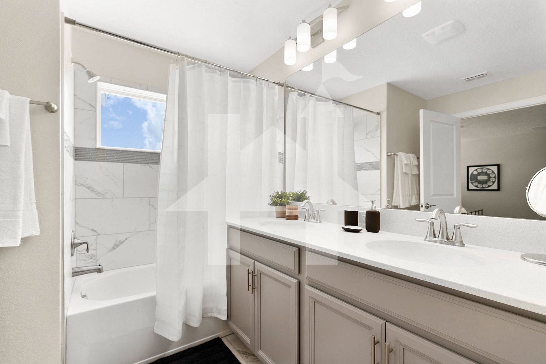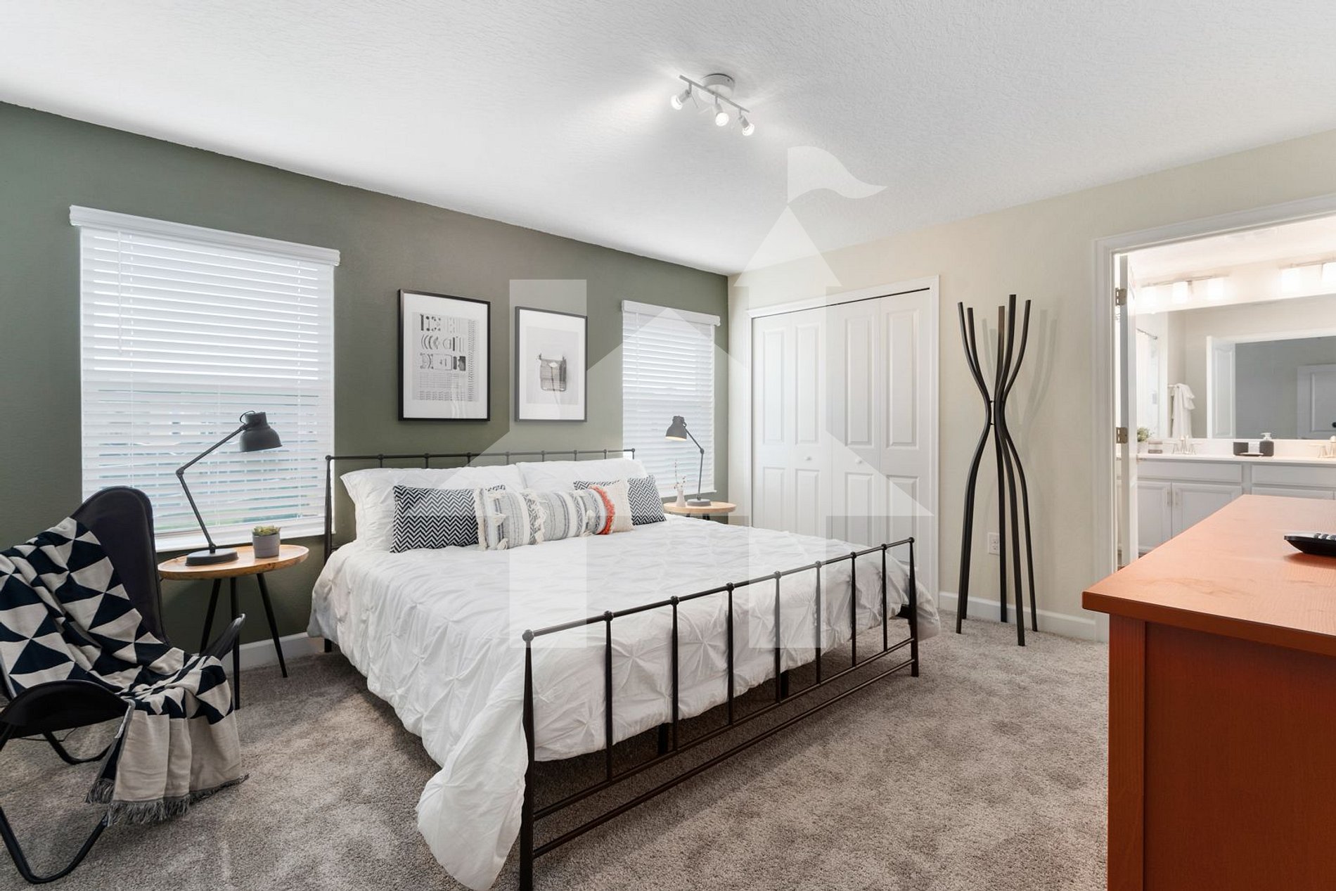 - Master Suite: King-size bed, SMART TV, private bathroom with shower and bathtub, dual sinks.