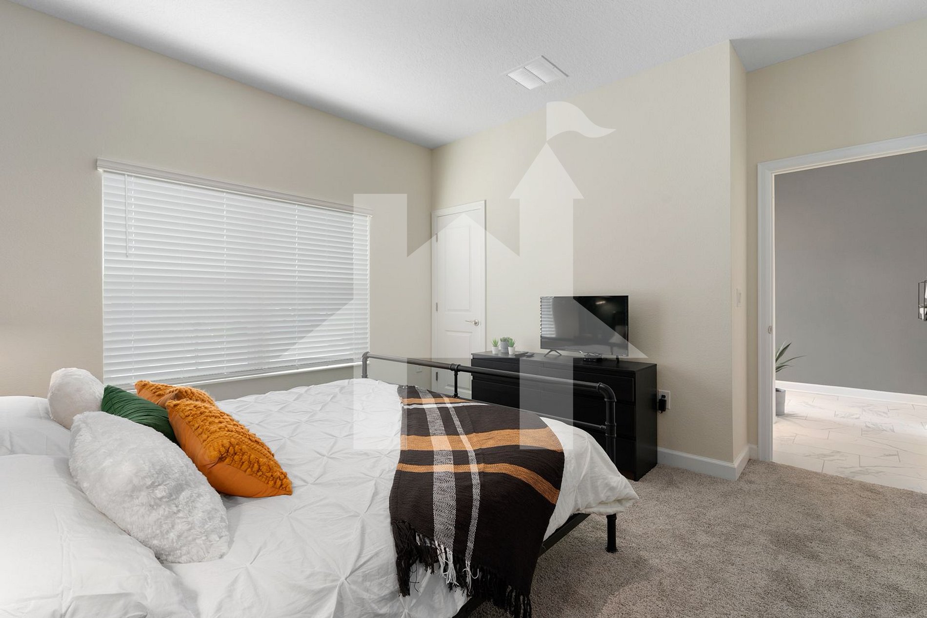 - King Bedroom: King-size bed, SMART TV, full bathroom.