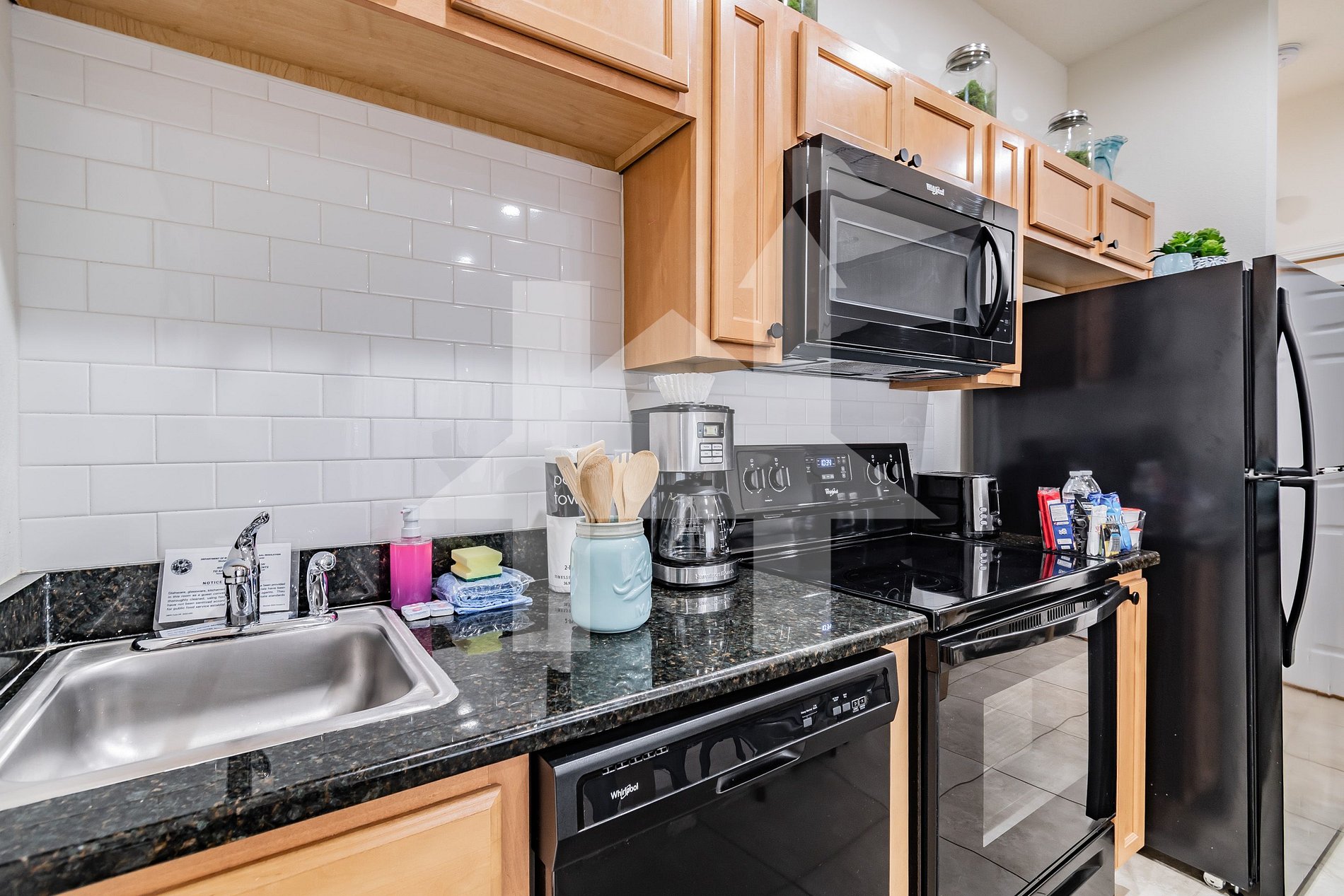 • Fully equipped kitchen with refrigerator, stove, oven, microwave, dishwasher, coffee maker, blender, and toaster