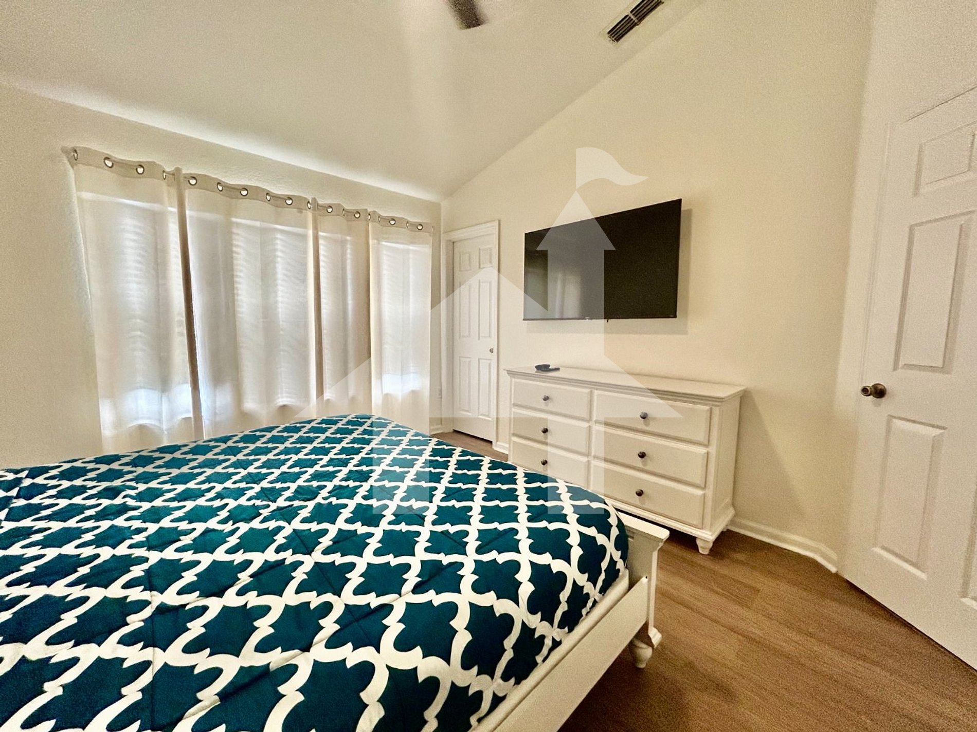 This ground-level bedroom offers another King bed, making it perfect for guests who prefer easy access and comfort. It also includes a private bathroom for added convenience.