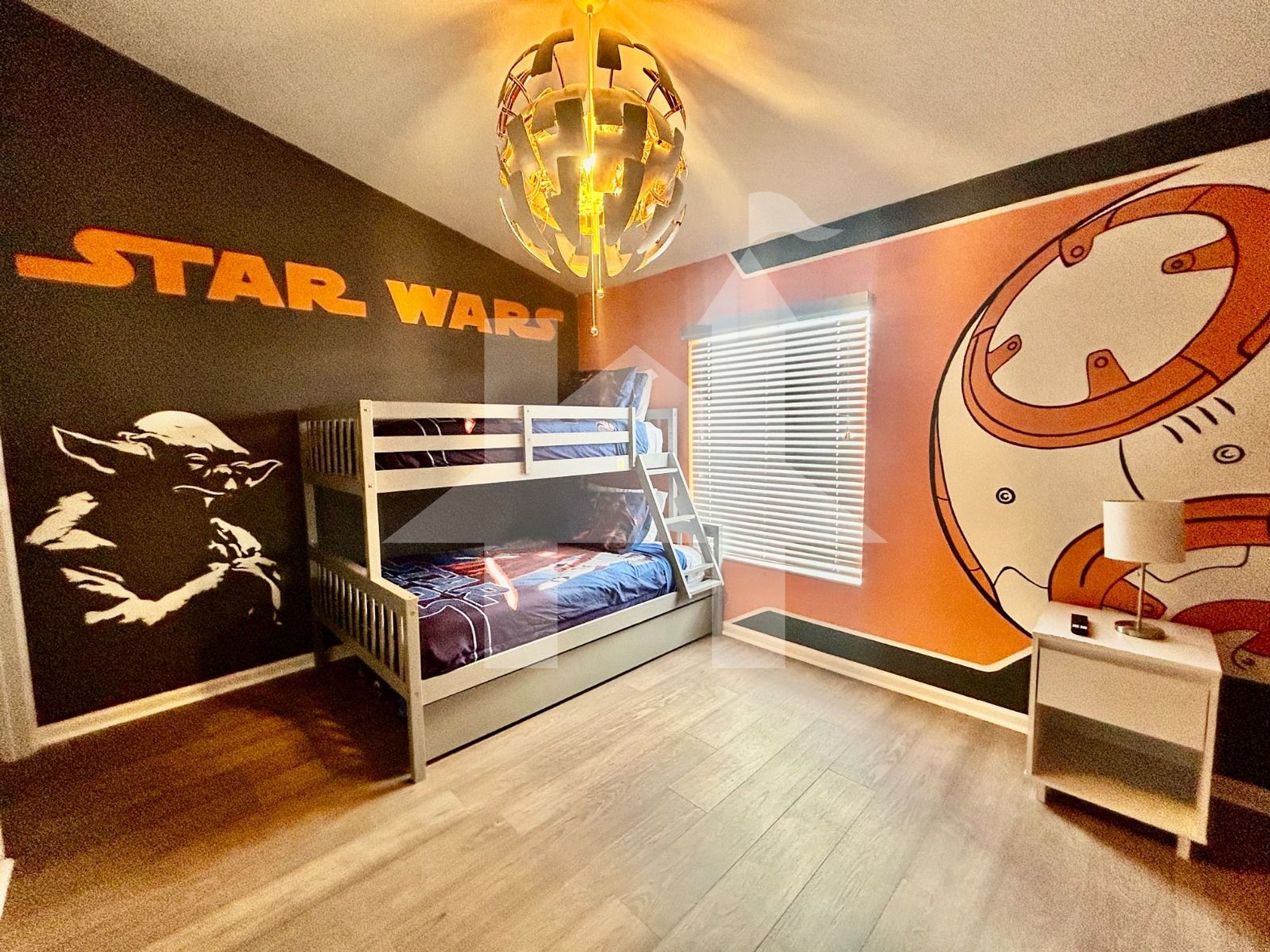 ☆ Three bedrooms, including a Star Wars-themed kids’ room, fully equipped kitchen, and in-house washer/dryer for your convenience.