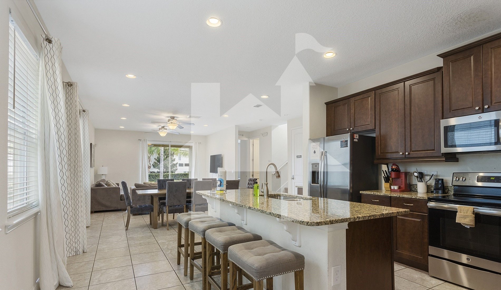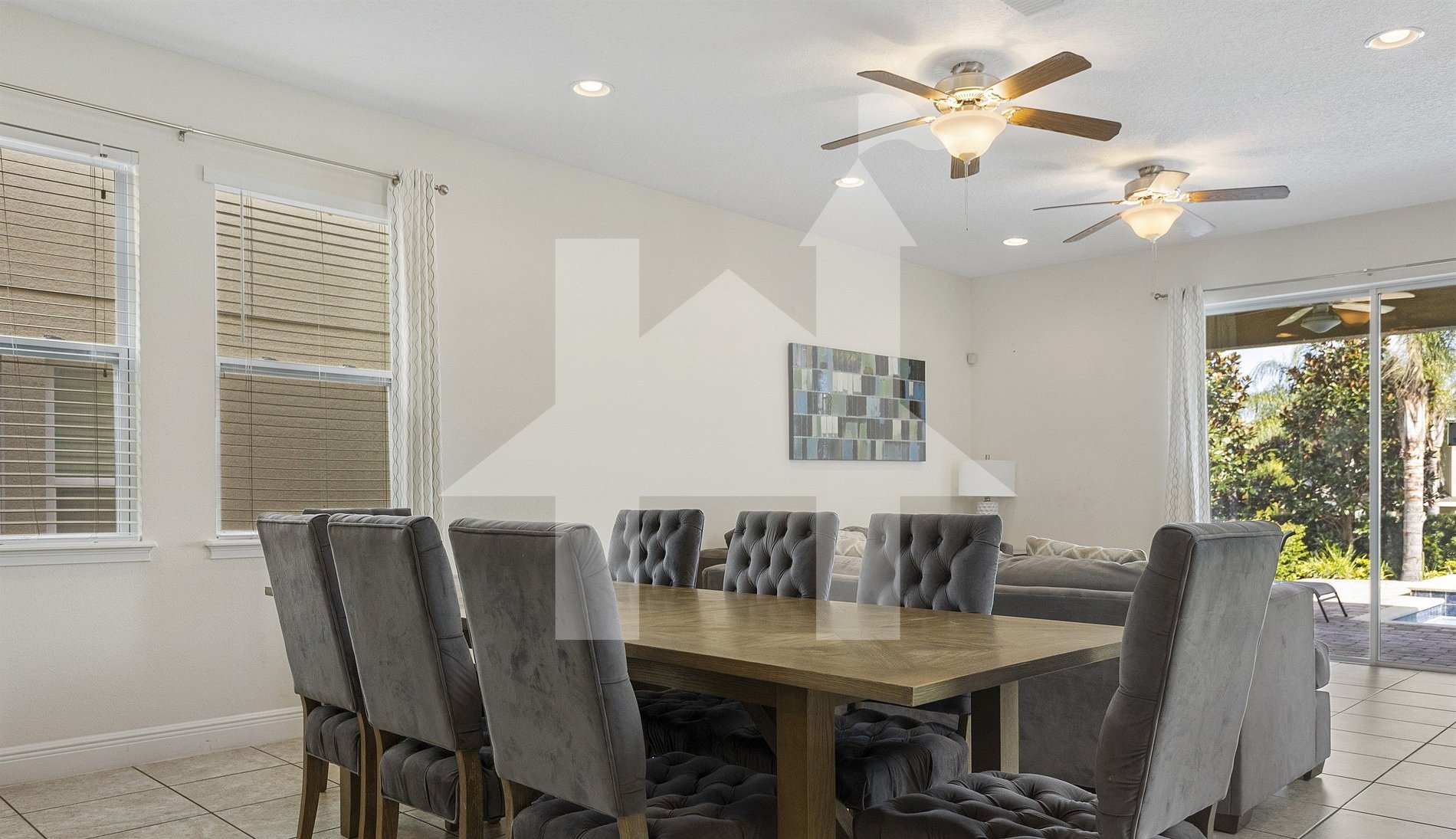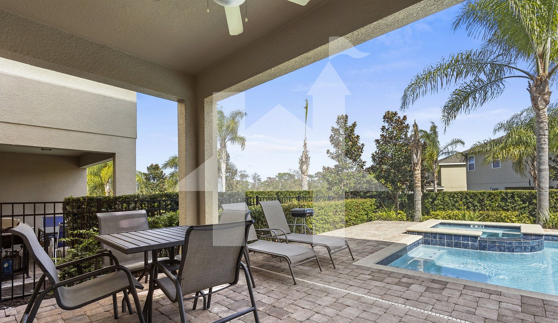 Stay in our charming 8-bedroom, 7-bathroom home with a fully equipped kitchen and private pool. Perfect for large family gatherings or a getaway with friends, this house offers all the comfort you need to enjoy your Orlando vacation. With a home theater and game room, fun is guaranteed! Plus, the close proximity to Disney and Universal makes this property even more irresistible.