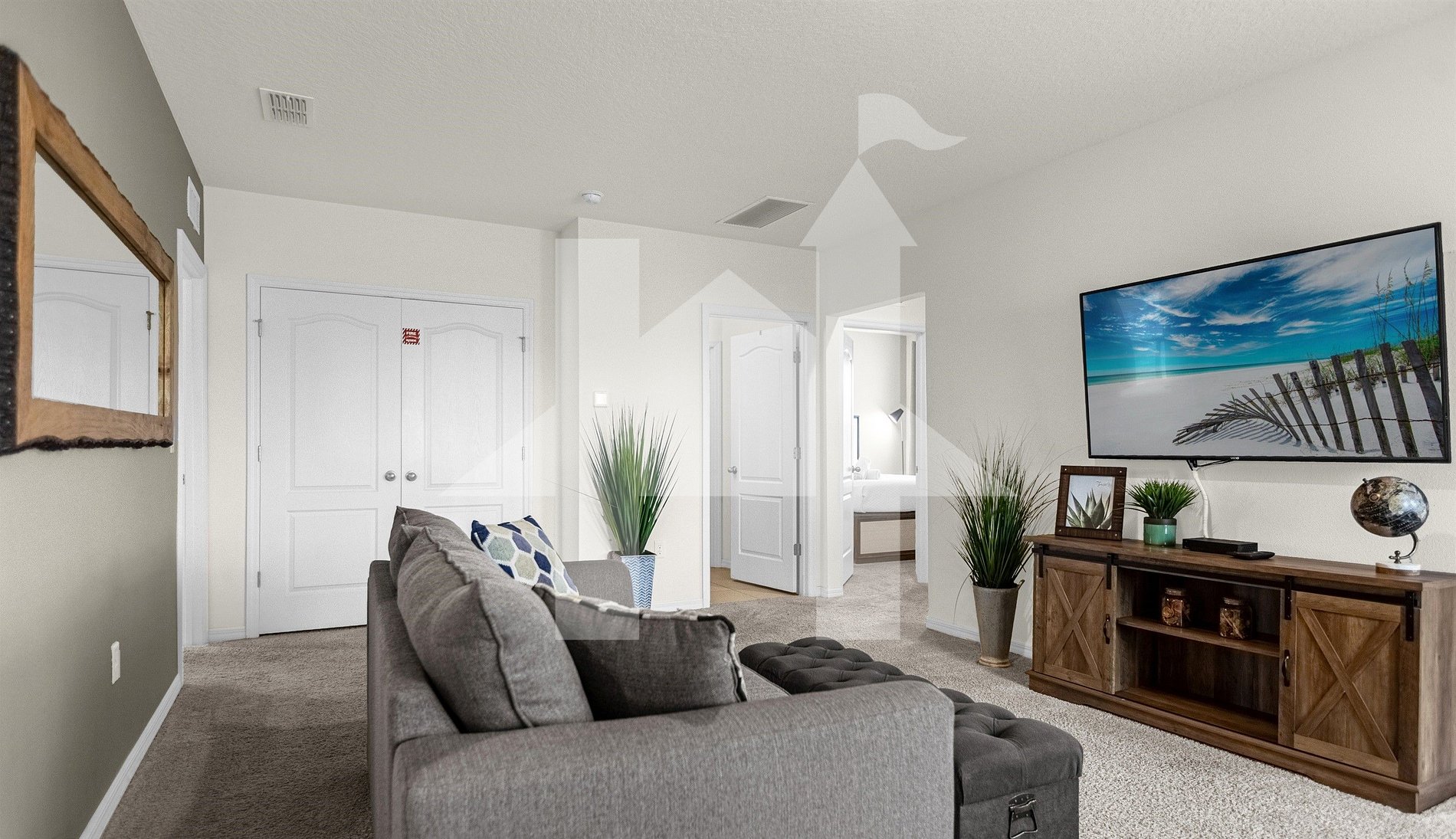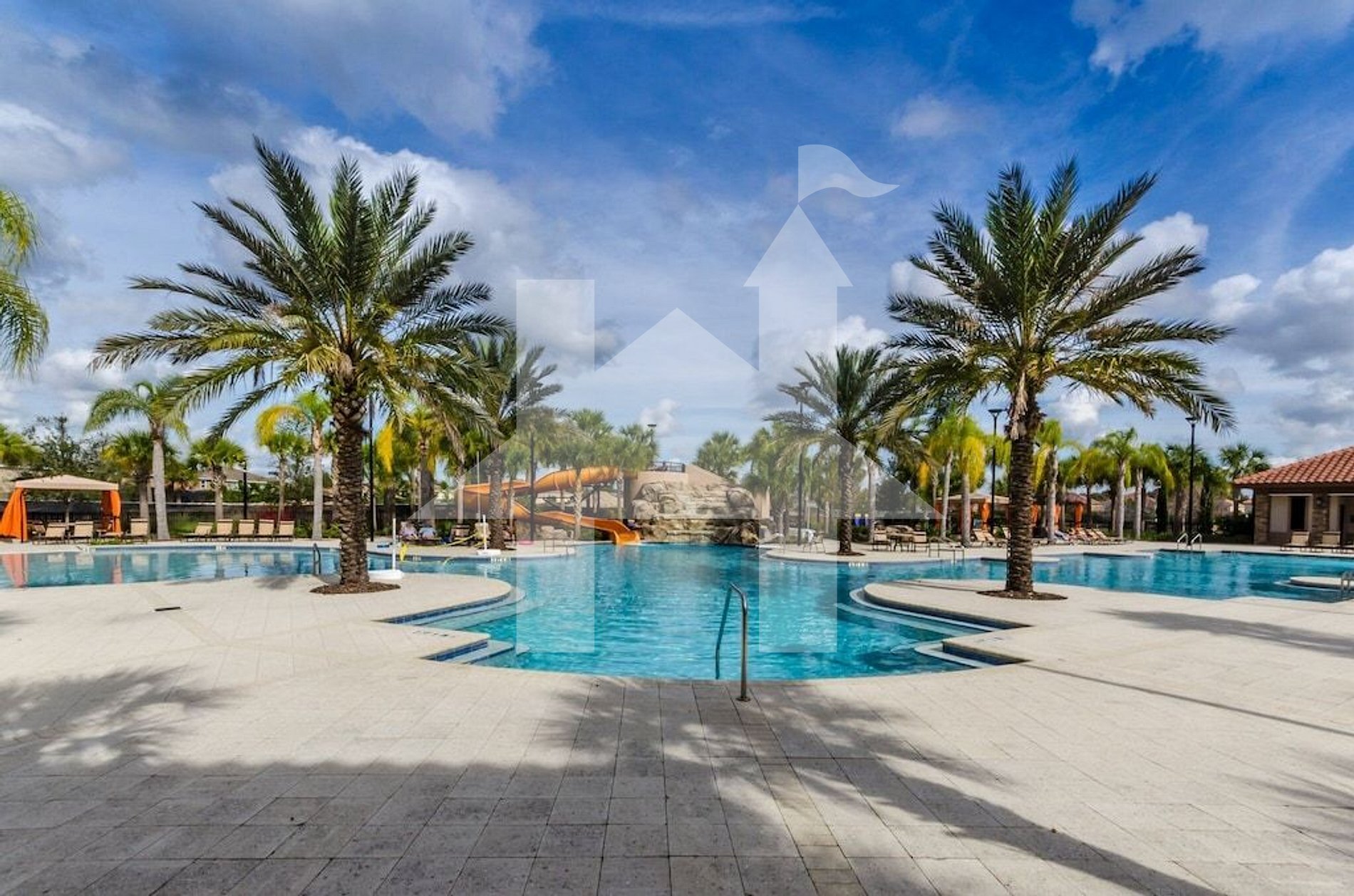 Relax in this 5BR home at Solterra Resort with private pool, outdoor grill, full kitchen, and open-concept living. Enjoy resort amenities like lazy river, waterslide, gym, café, and tennis courts. Just 15 min from Disney and 20 min from Universal!