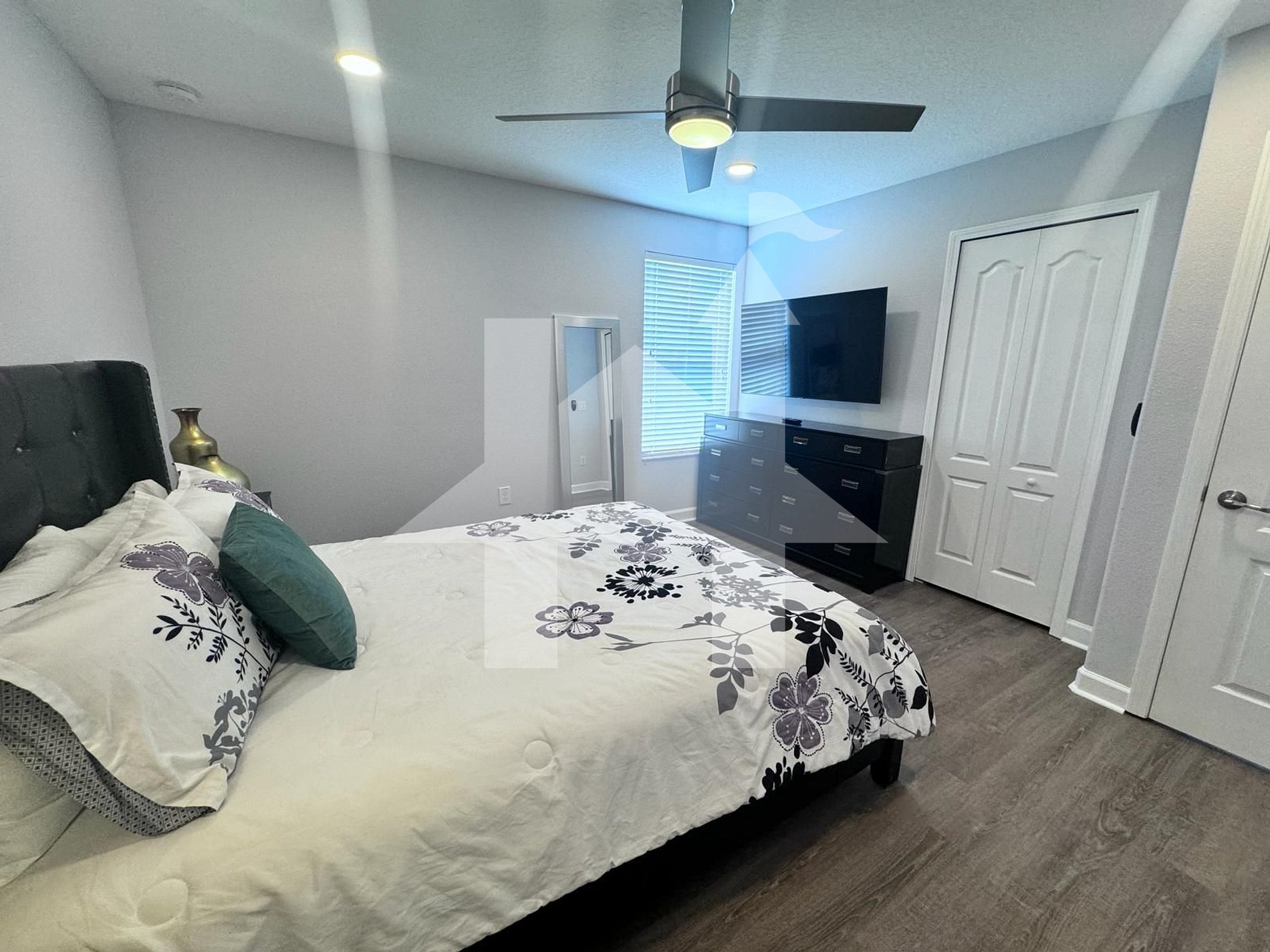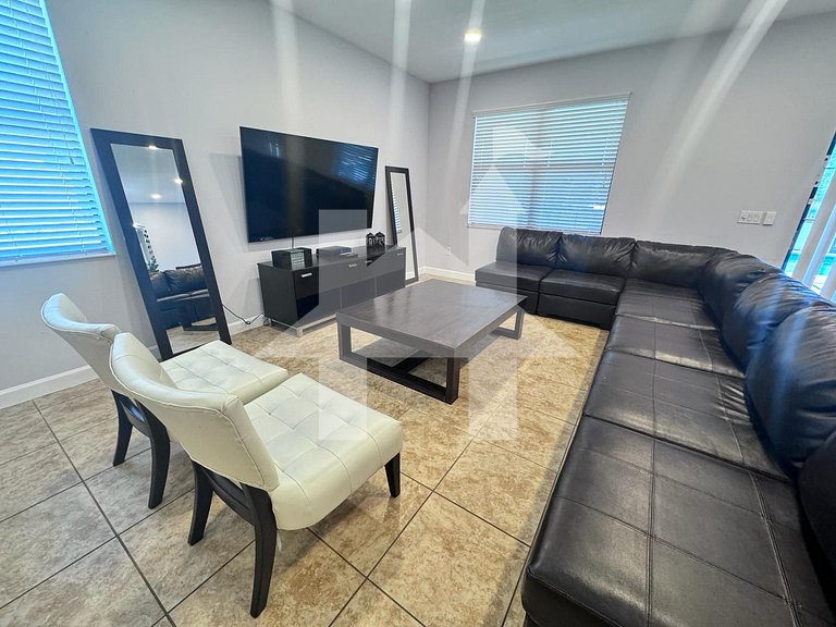 Located in Champions Gate Resort, this villa is just 15 minutes away from Disney parks. The resort offers a wide range of amenities, including a resort-style pool, lazy river, waterslides, tiki bar, restaurant, state-of-the-art fitness center, sports courts, and private cabana rentals. All of this in a prime location close to all of Orlando’s top attractions.
