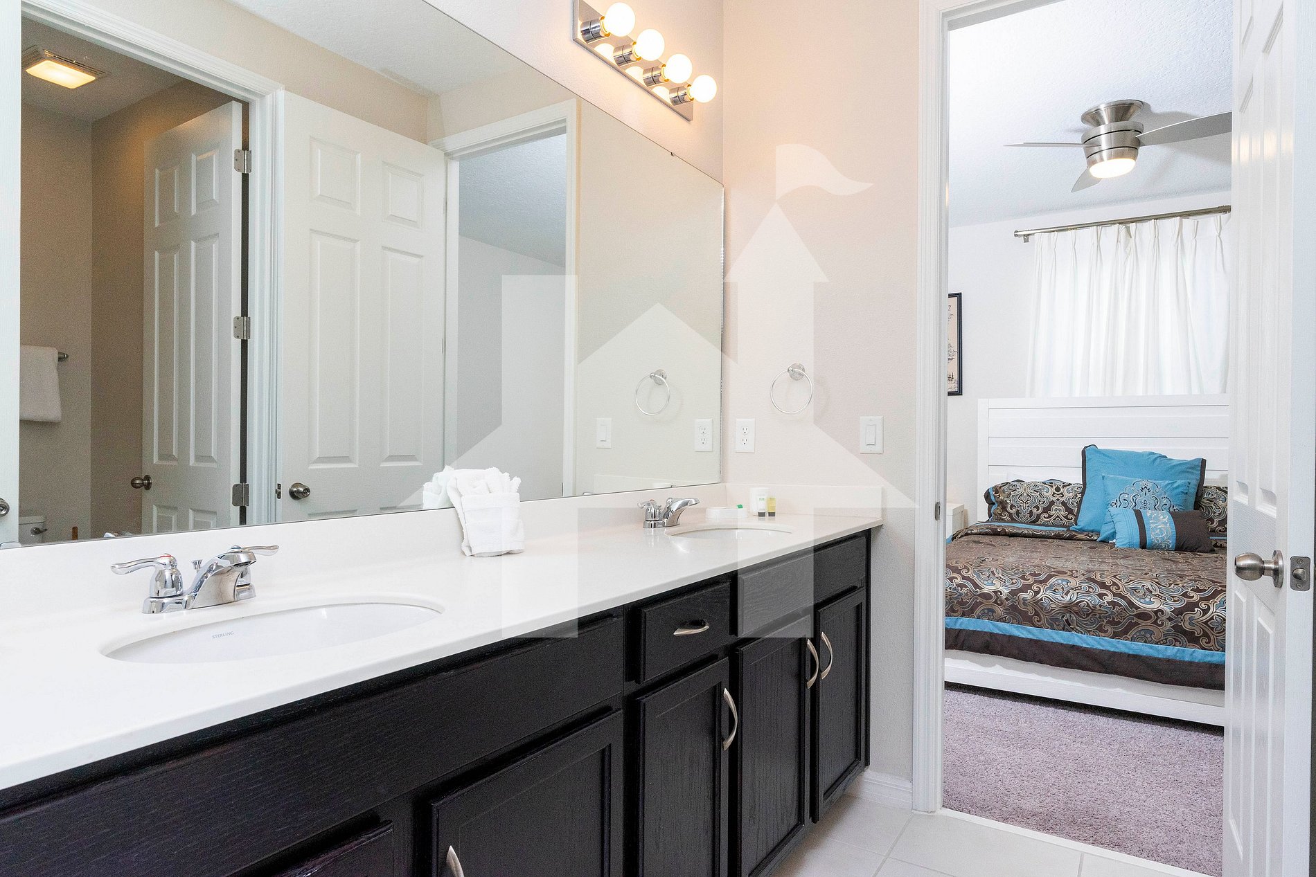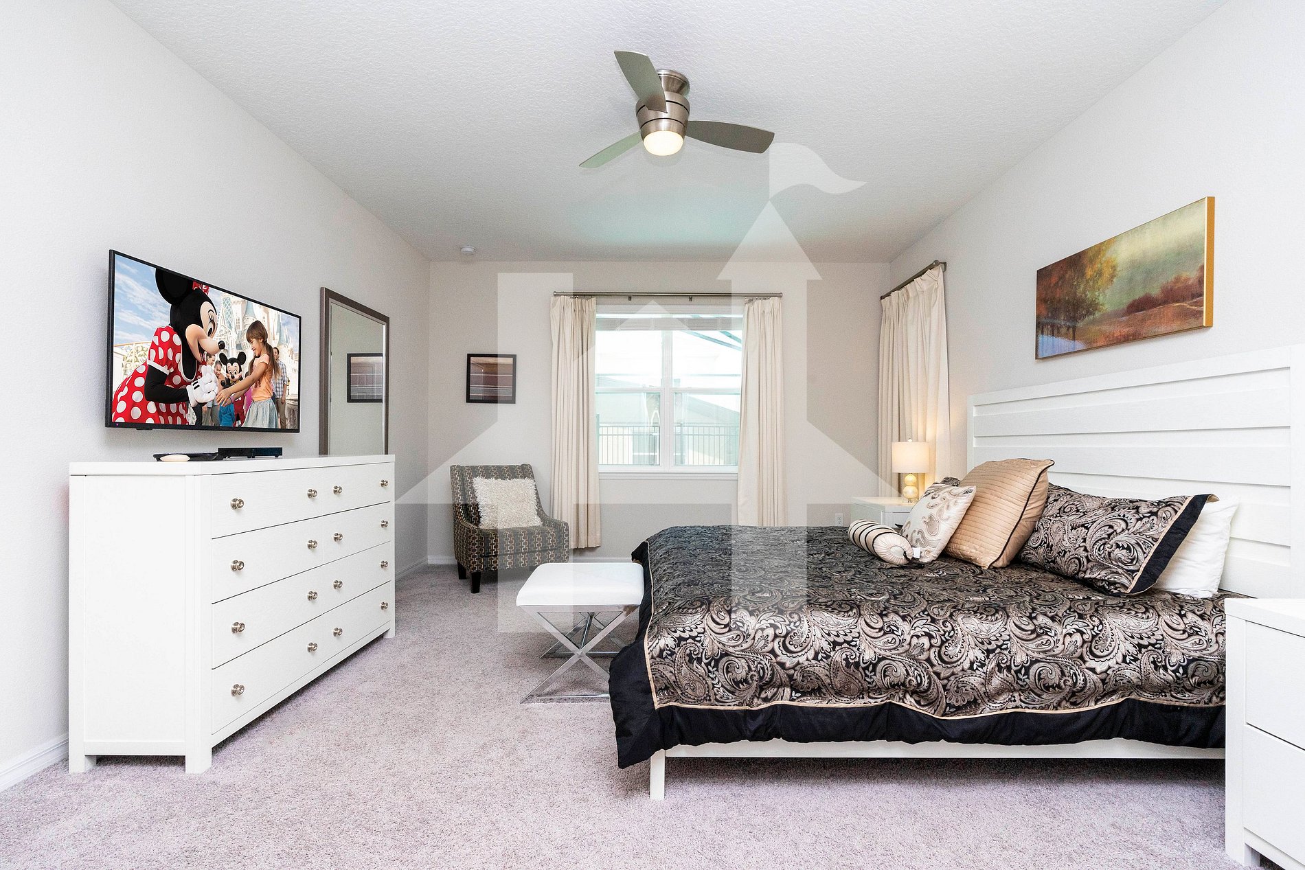 Guests have full access to the entire home, private pool, and all Solara Resort amenities including the clubhouse, gym, and water park.