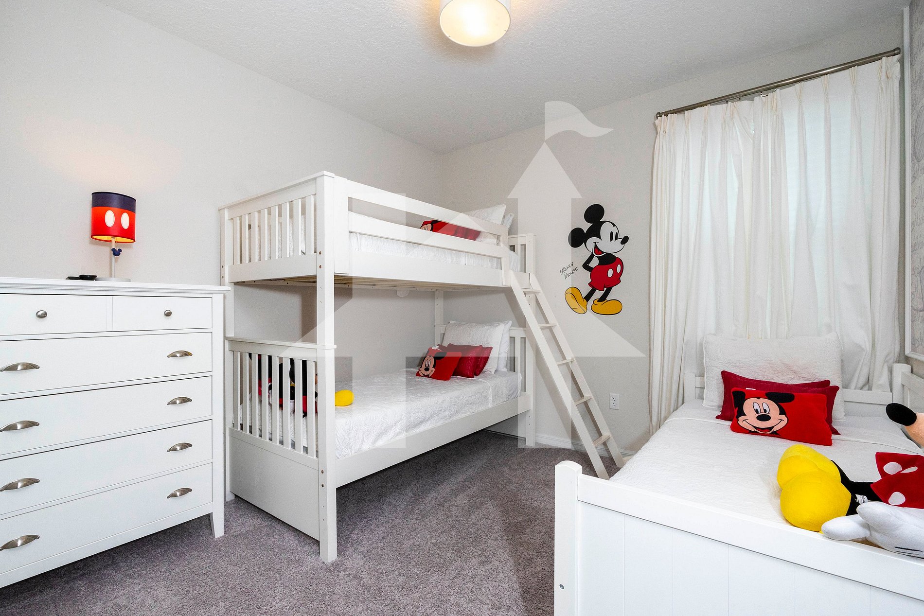 • Bedroom #3: Mickey-themed – 1 bunk (Twin/Twin), 1 twin, 1 trundle
