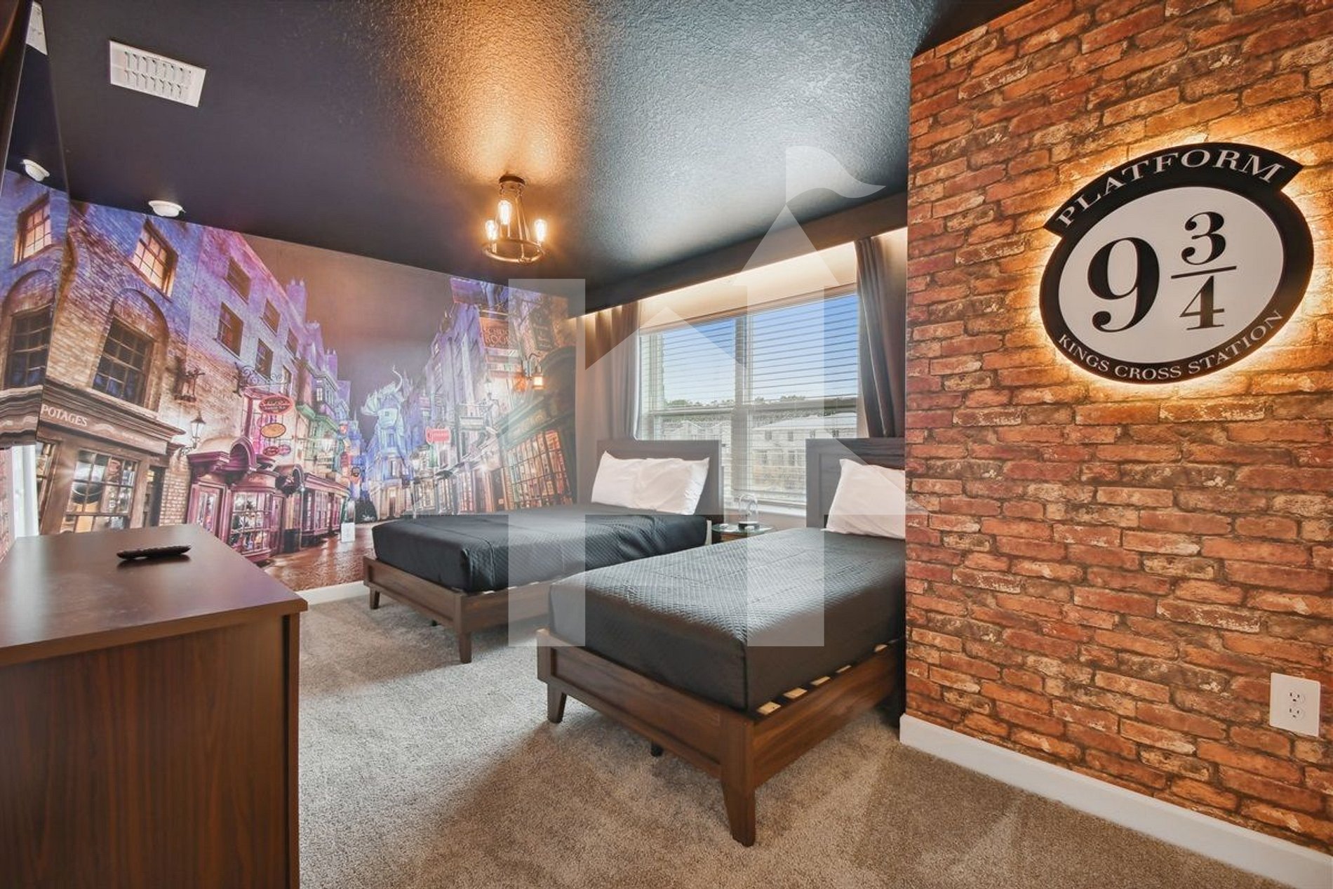 Full size bed and single bed, SMART TV, closet, and private bathroom with shower.