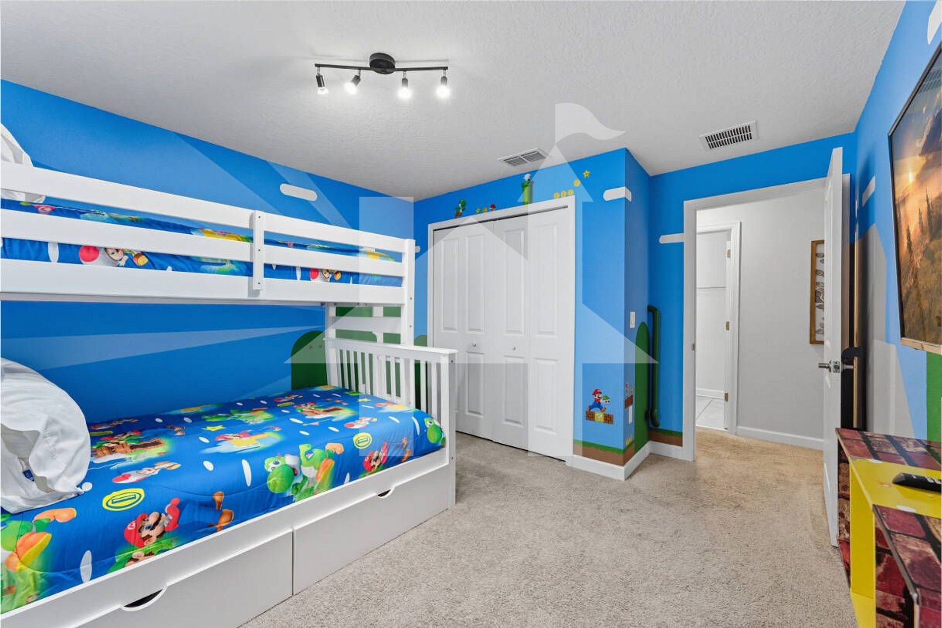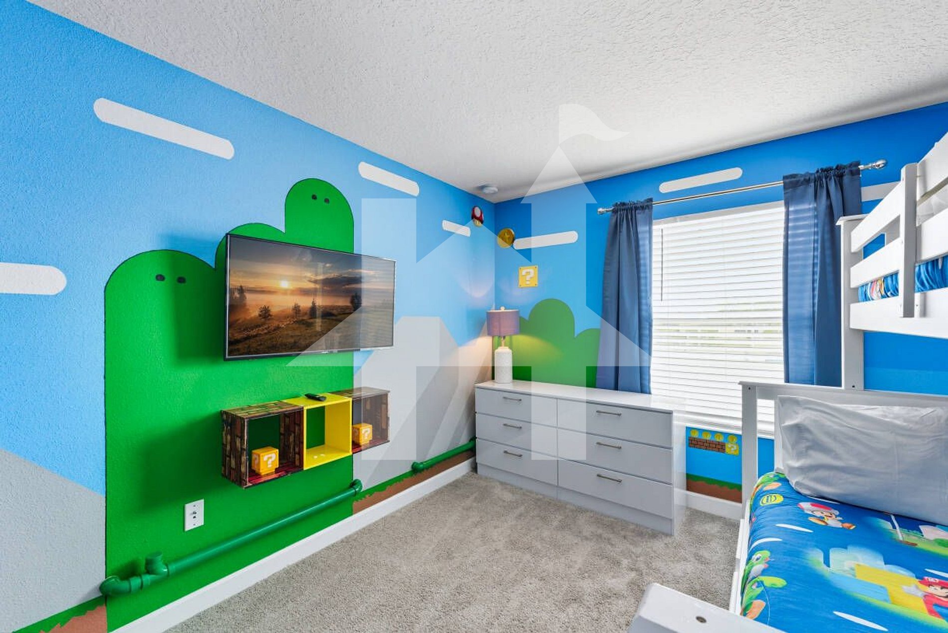 Mario Bros Room: Bunk bed (Twin over Full), Smart TV, shared bathroom