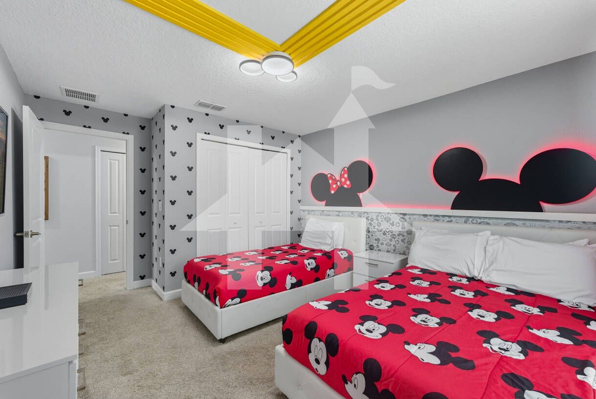Mickey & Minnie Room: 1 Full bed + 1 Twin bed, Smart TV, shared bathroom