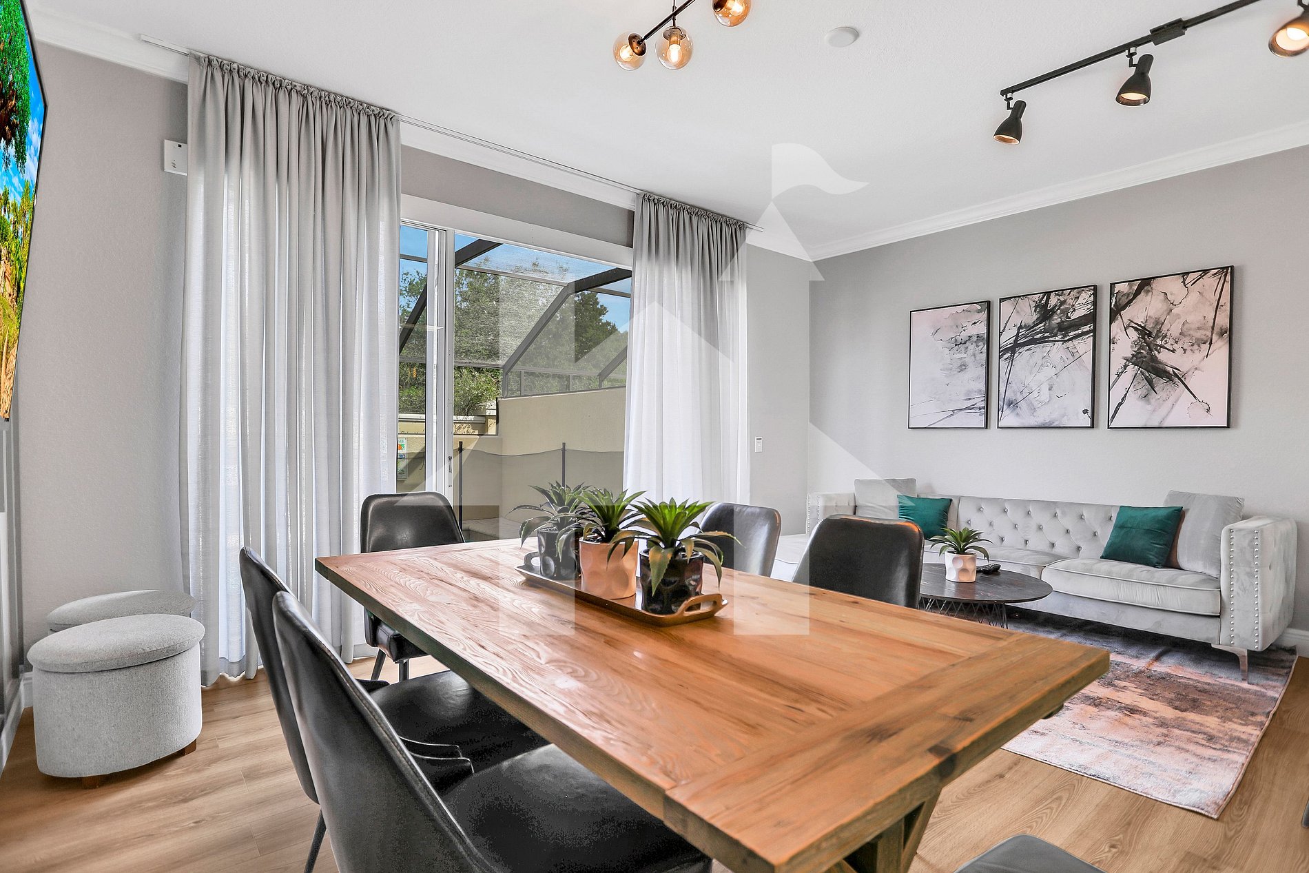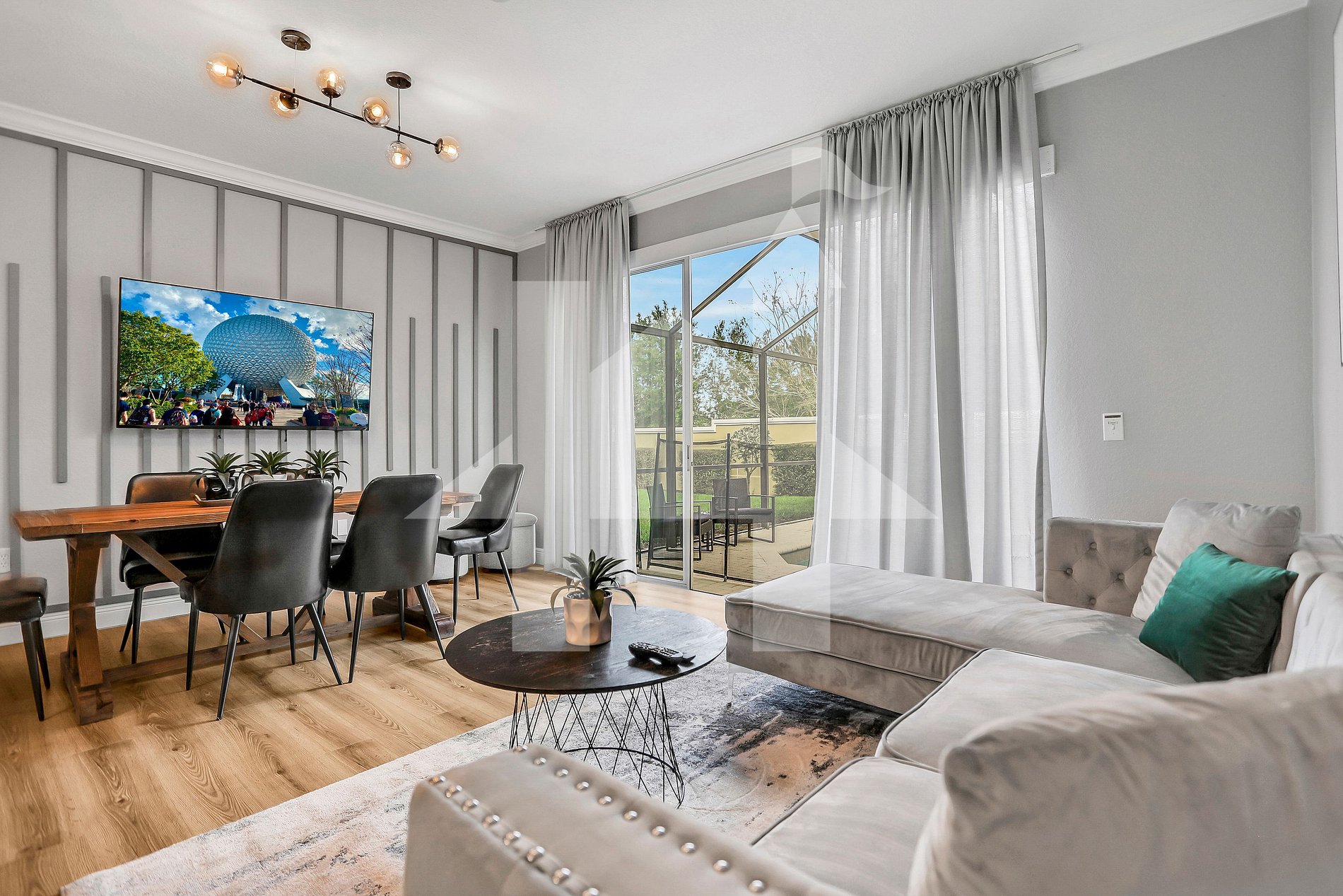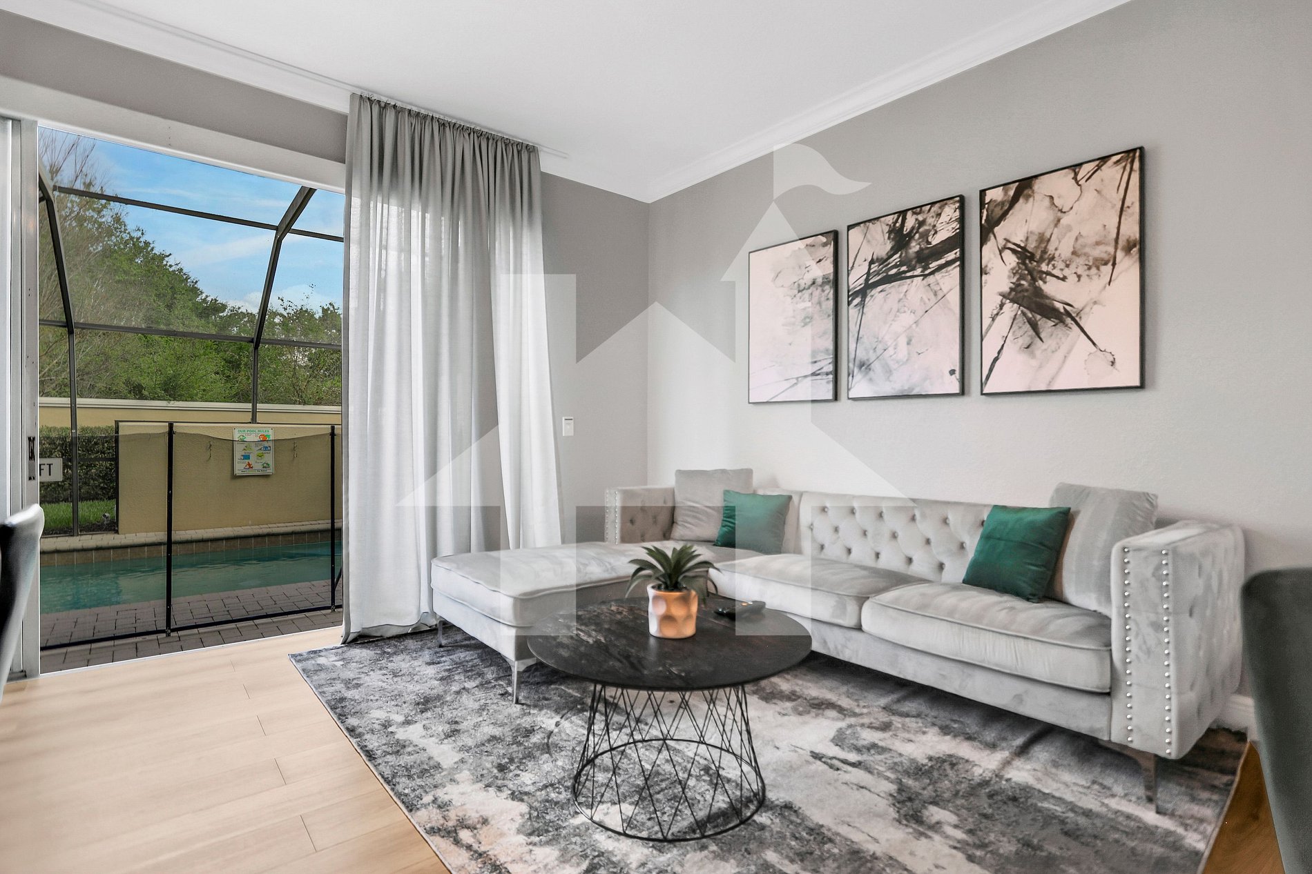 tay at our charming 3-bedroom, 3-bathroom townhome, featuring modern furniture and a private pool, perfect for relaxing after a day at the parks. Our home is carefully maintained to welcome you and your family with maximum comfort and convenience. Enjoy the Florida sunshine while relaxing in a delightful outdoor space, complete with comfortable furniture.