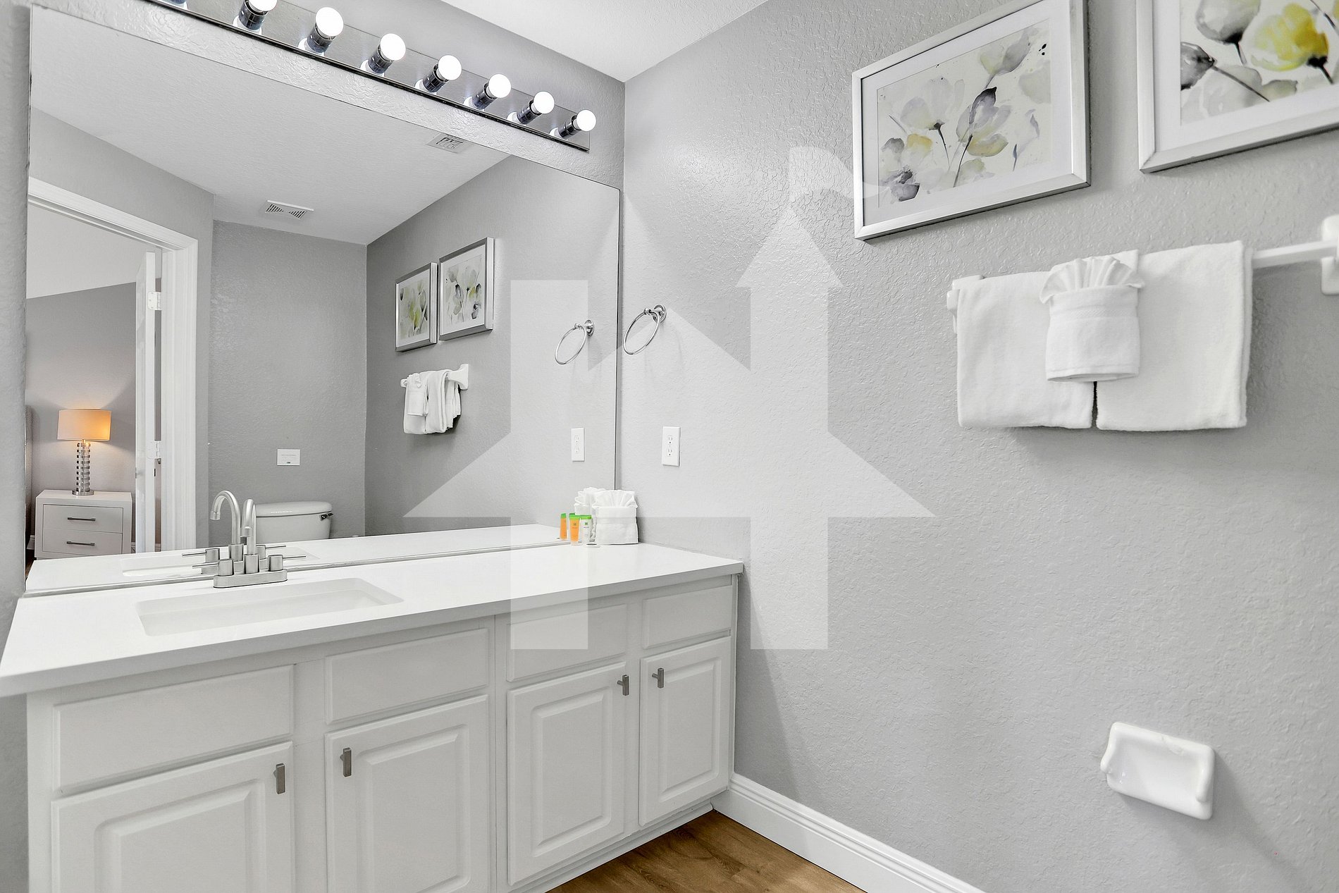 Located at the renowned Windsor Hills Resort, our home offers access to a state-of-the-art clubhouse with a fitness center, business center, kitchen, and a day spa. The clubhouse features a lazy river, playground, splash park, resort-style pool, a tiki bar with popular cold drinks, delicious snacks, and a volleyball court. Windsor Hills Resort is one of the closest resorts to Disney, offering a prime location and 24-hour security for you and your family.