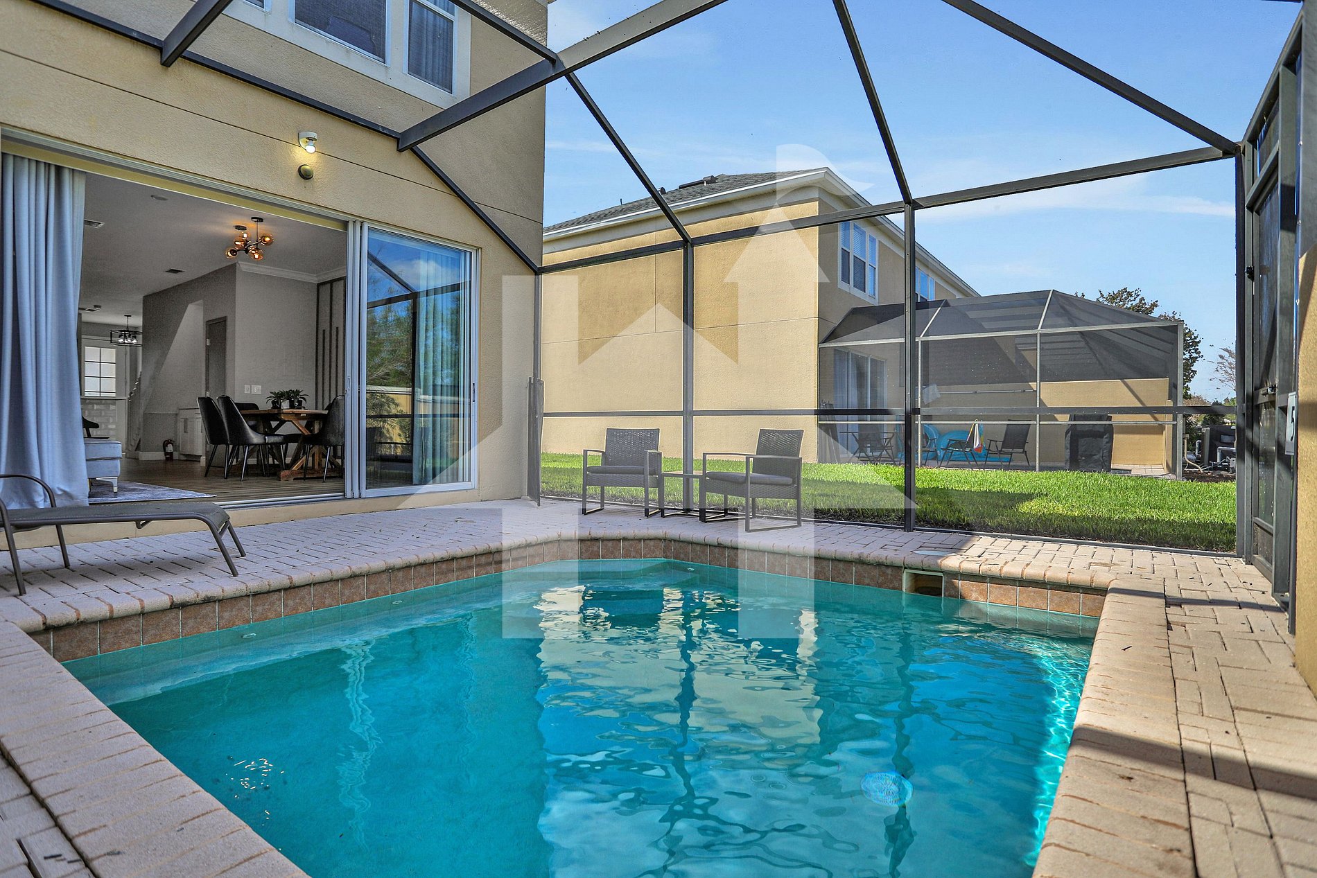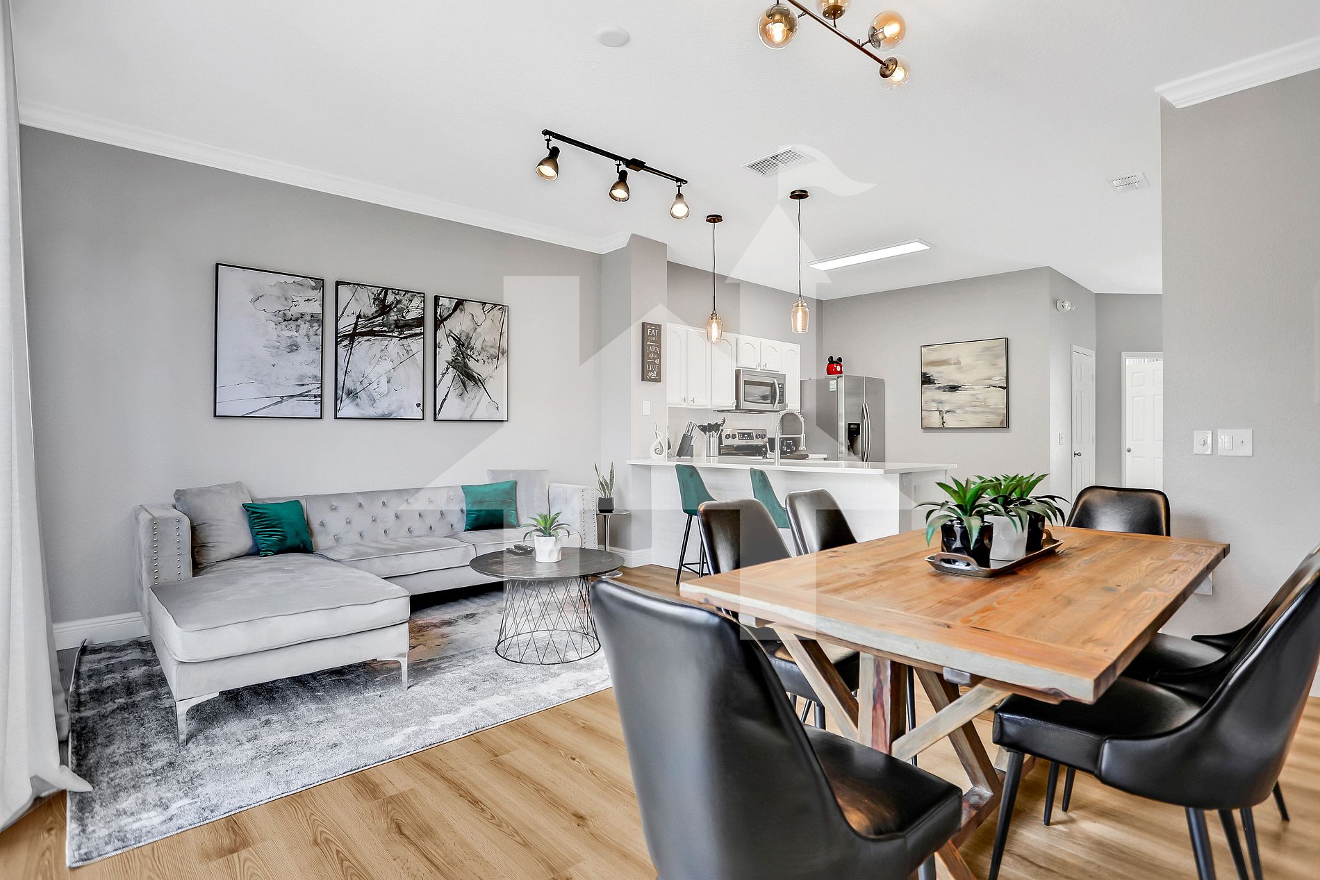 tay at our charming 3-bedroom, 3-bathroom townhome, featuring modern furniture and a private pool, perfect for relaxing after a day at the parks. Our home is carefully maintained to welcome you and your family with maximum comfort and convenience. Enjoy the Florida sunshine while relaxing in a delightful outdoor space, complete with comfortable furniture.