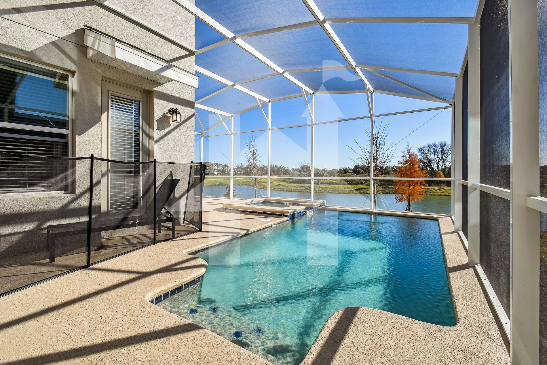 Come stay in our luxury home that features 5 bedrooms, 5 bathrooms open kitchen concept, barbecue and a private heated pool with a nice SPA and wonderful lake view.