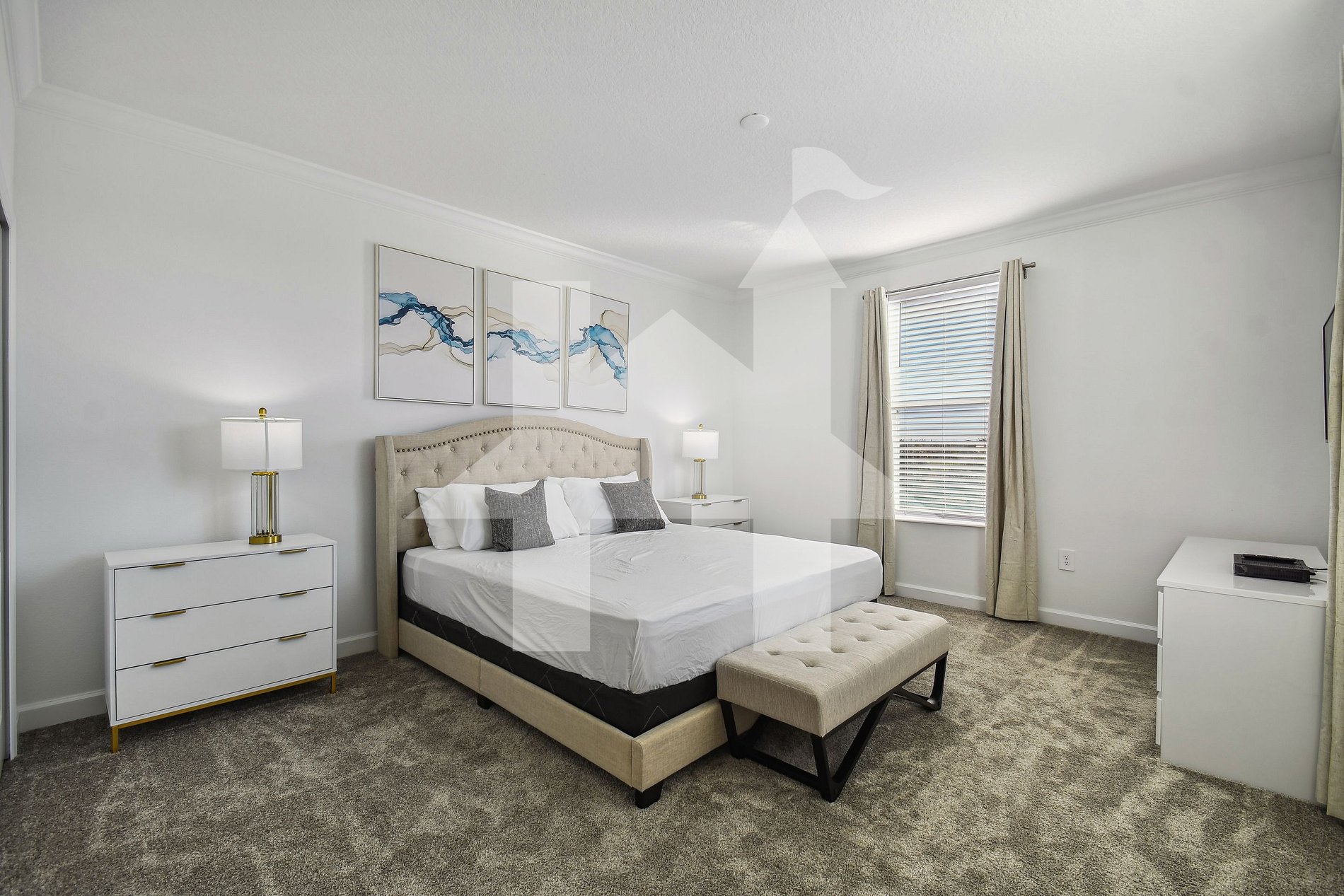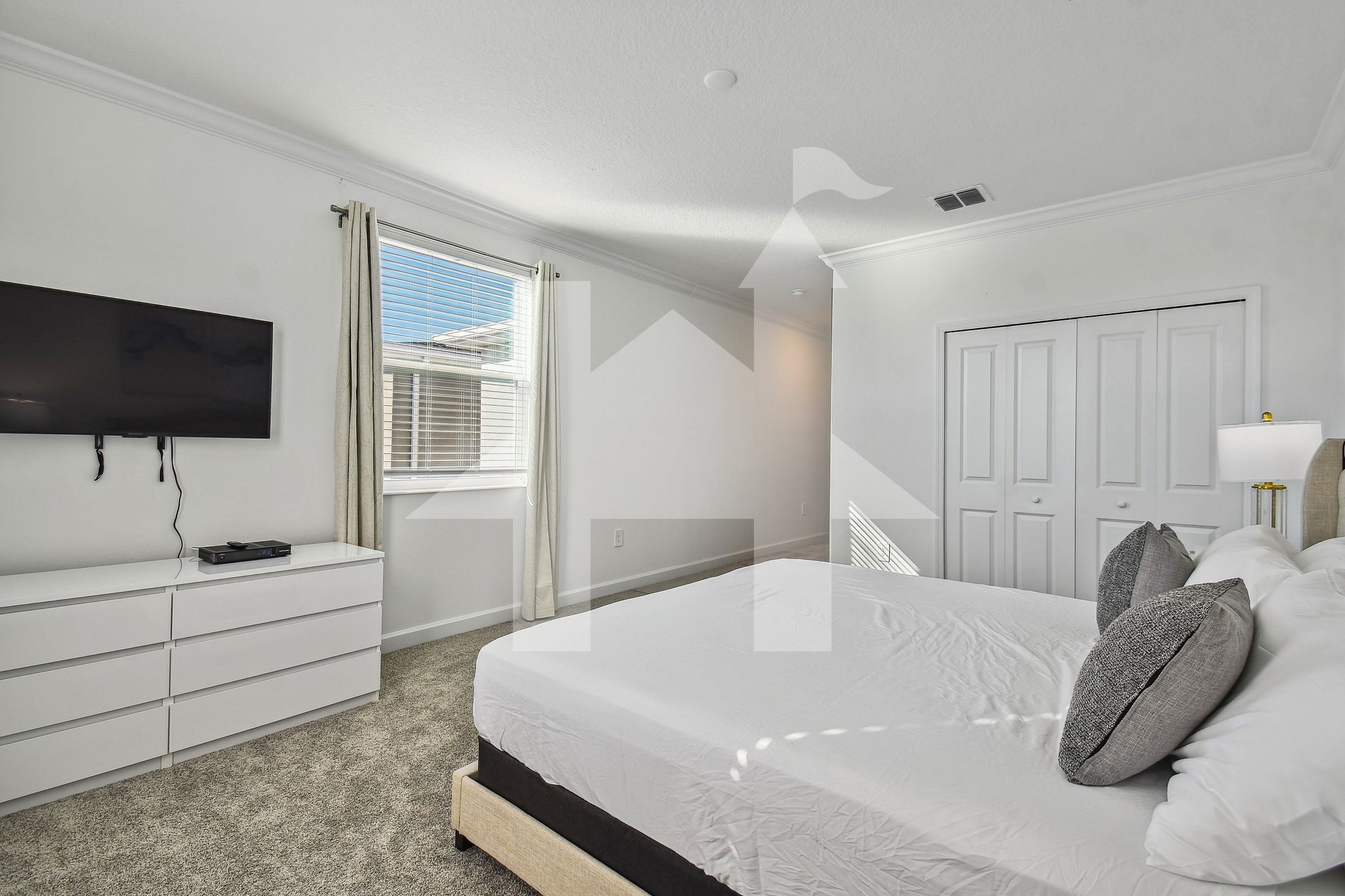 - Master Suite - King size bed, Smart TV, Closet and private bathroom with shower room and bath tub.