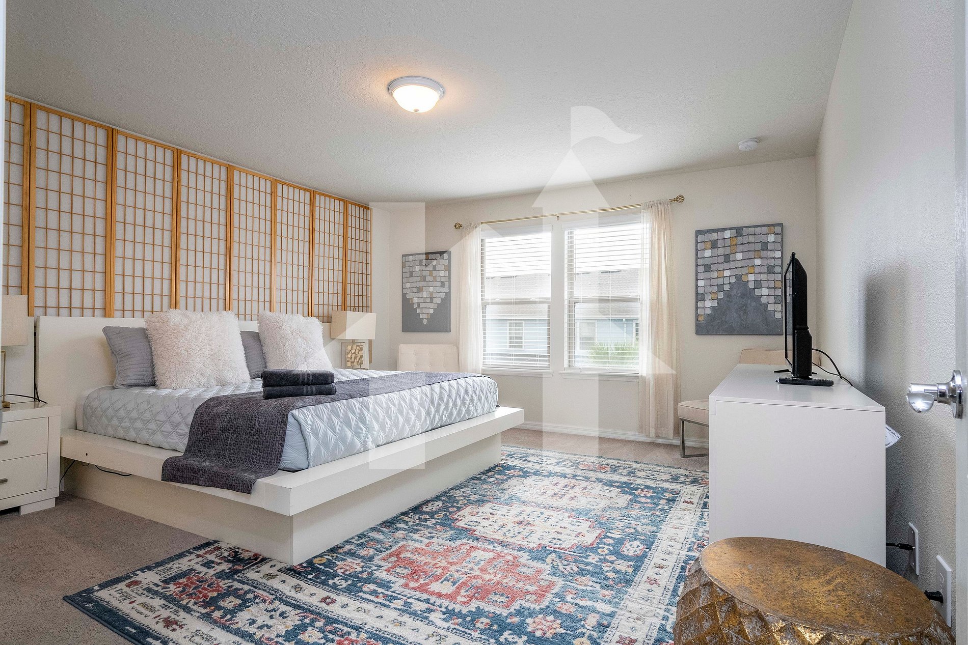 Windsor at Westside Resort boasts a variety of amenities, including a large resort-style pool, lazy river, water slides, a kids' splash pad, sand volleyball courts, a full gym, playground, and putting green. There's also a tiki bar by the pool, perfect for relaxing under the Florida sun. You can even explore the lake with boating options.