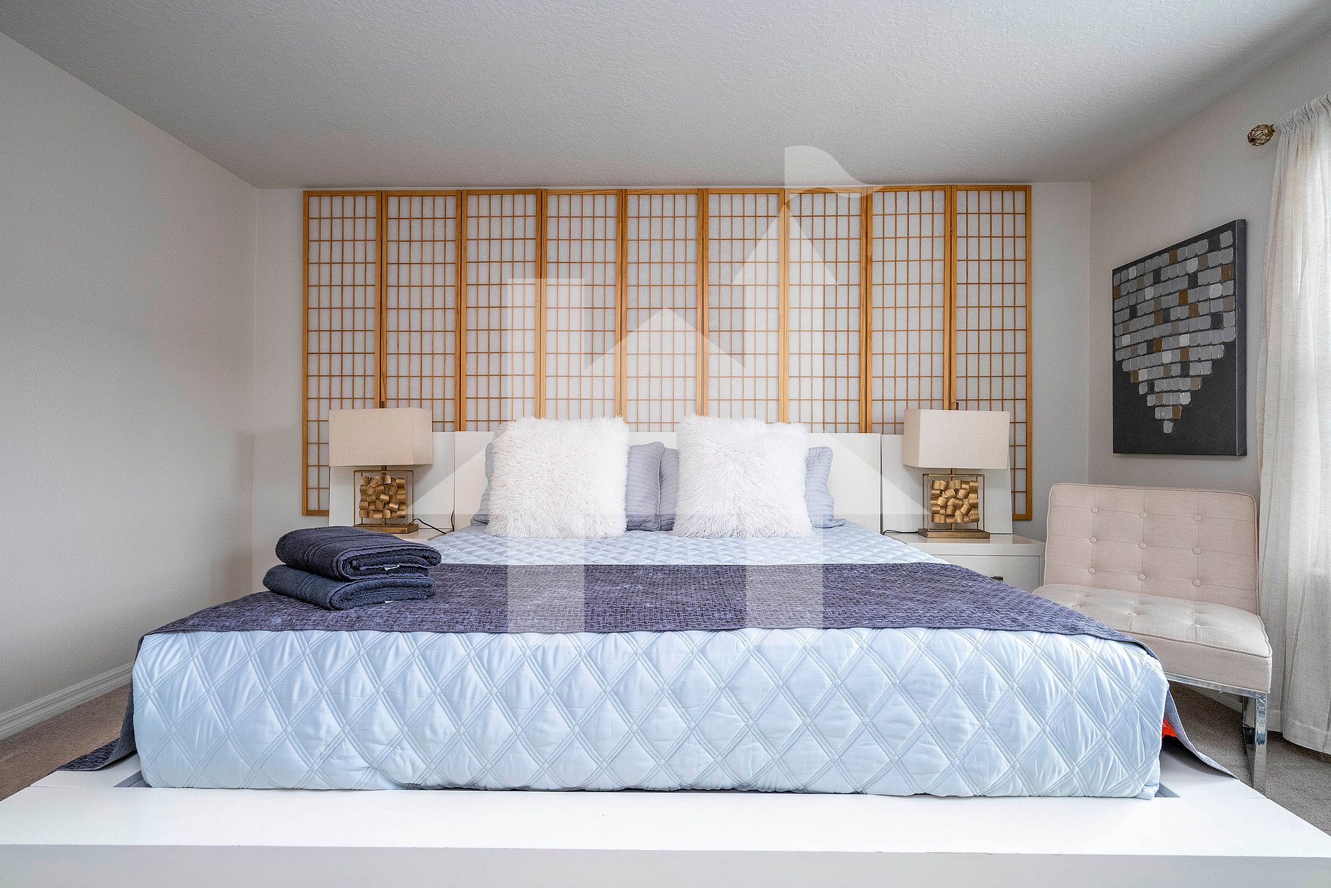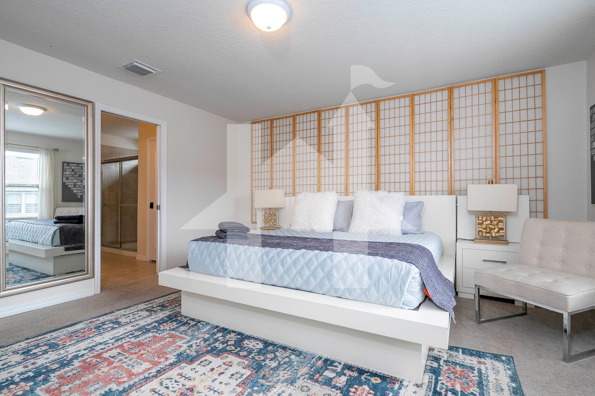 Master Suite: King-size bed, SMART TV, walk-in closet, and private bathroom.