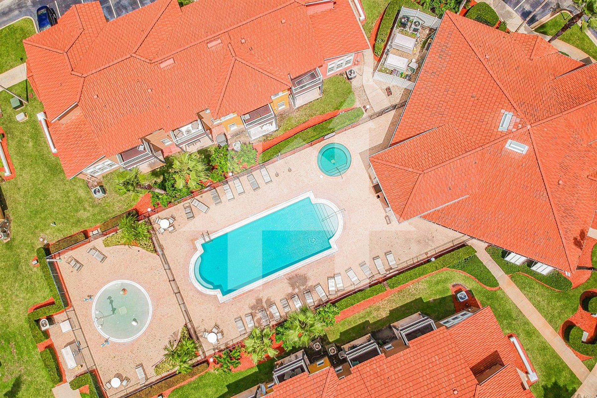 This area opens onto the partially covered and fully screened patio in the pool area.