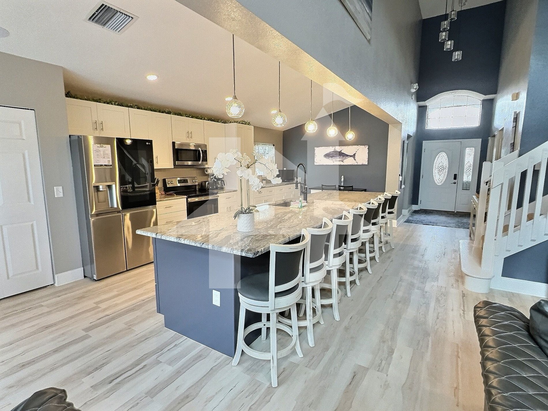 Come stay in our spacious 5-bedroom, 3-bathroom home with a fully equipped kitchen and private pool. Our home has been thoroughly disinfected and sanitized to ensure the safety and peace of mind of all guests. Relax in our comfortable living area and enjoy a family-friendly environment with plenty of space for everyone.