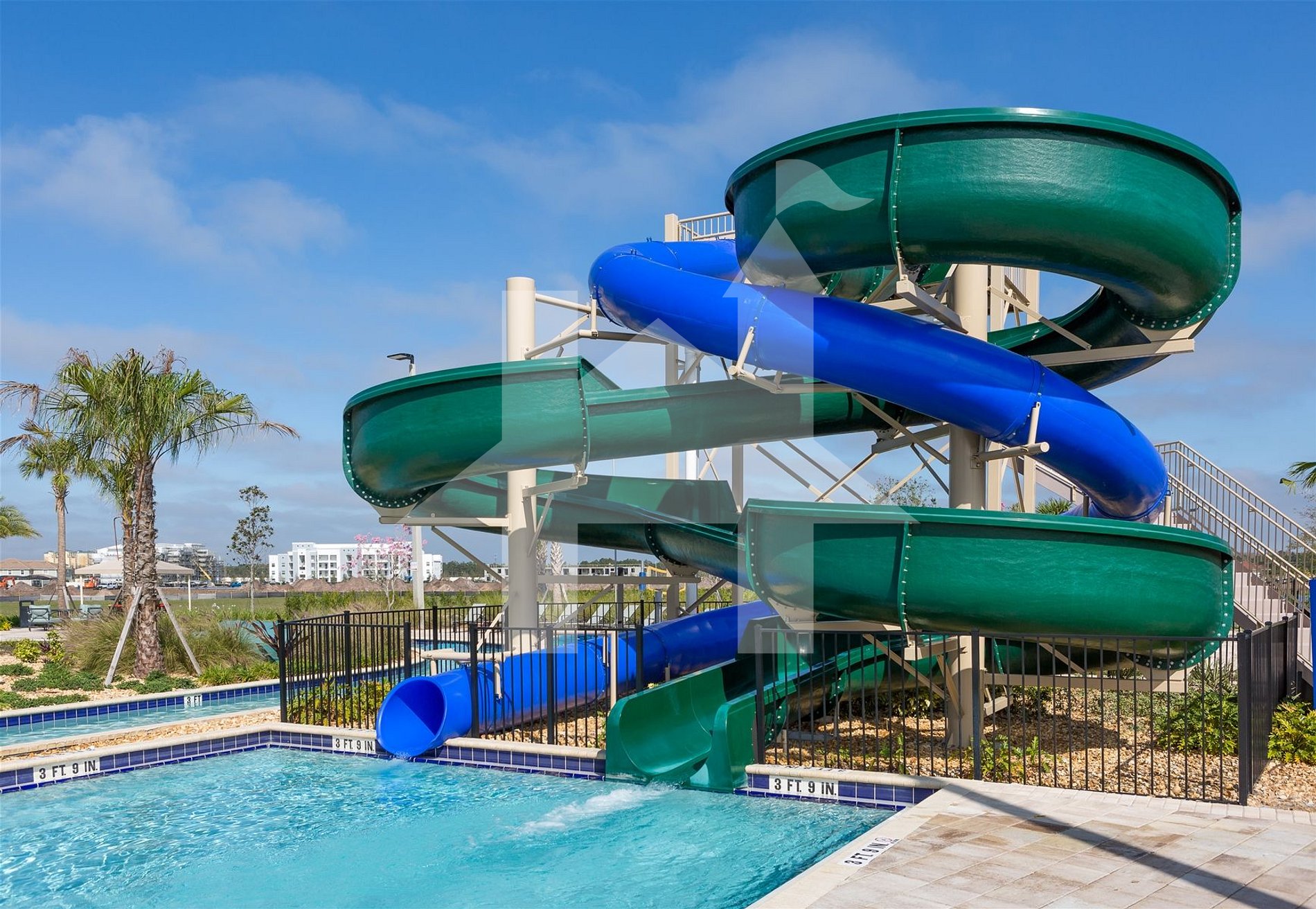 Resort pool, lazy river, splash park, playground, sports courts, mini-golf