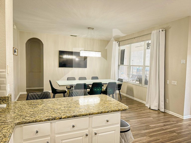 Just minutes from Disney, this 6BR villa in Windsor Hills Resort offers a private pool, Avengers game room, and themed bedrooms for the whole family. Enjoy open living spaces, a fully equipped kitchen with granite countertops, and resort-style amenities including water park, gym, and sports courts.