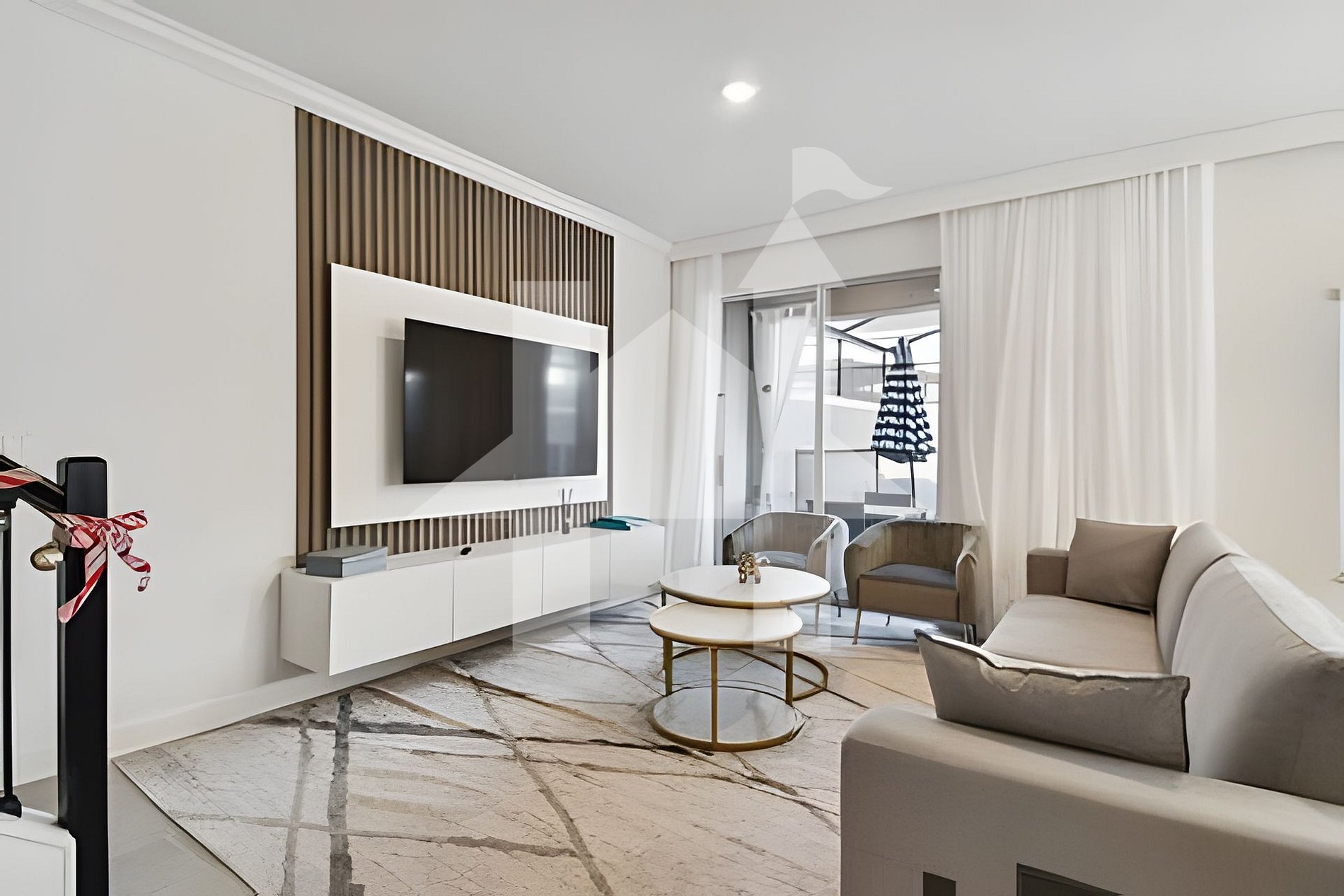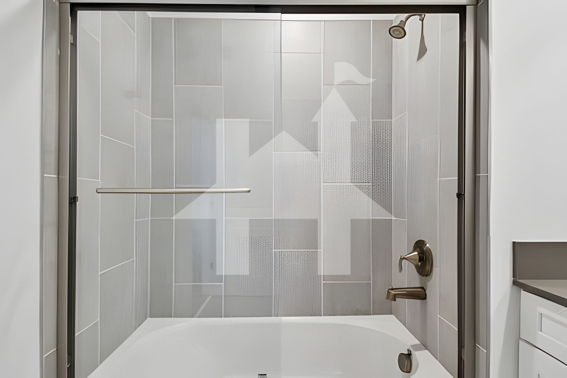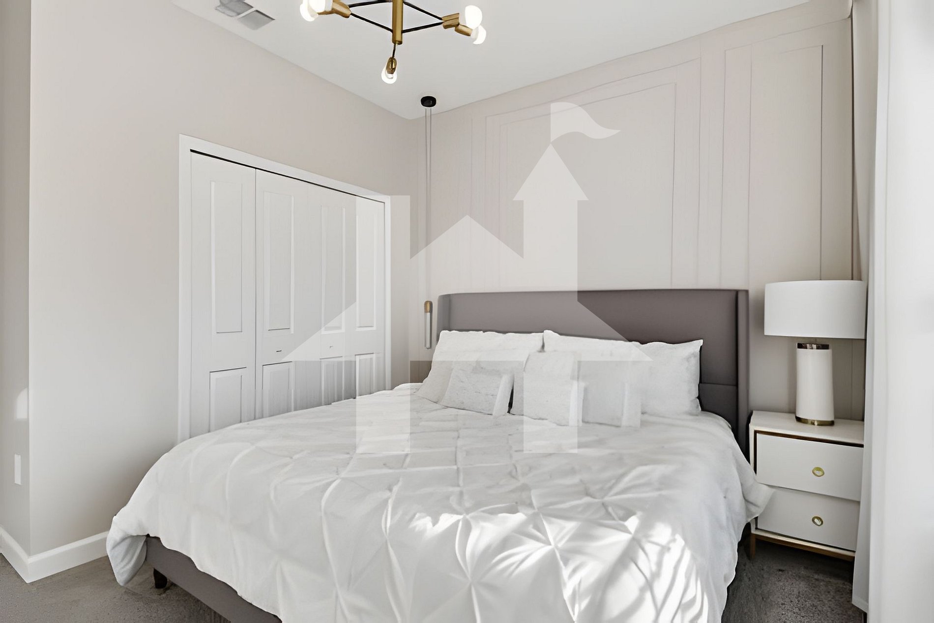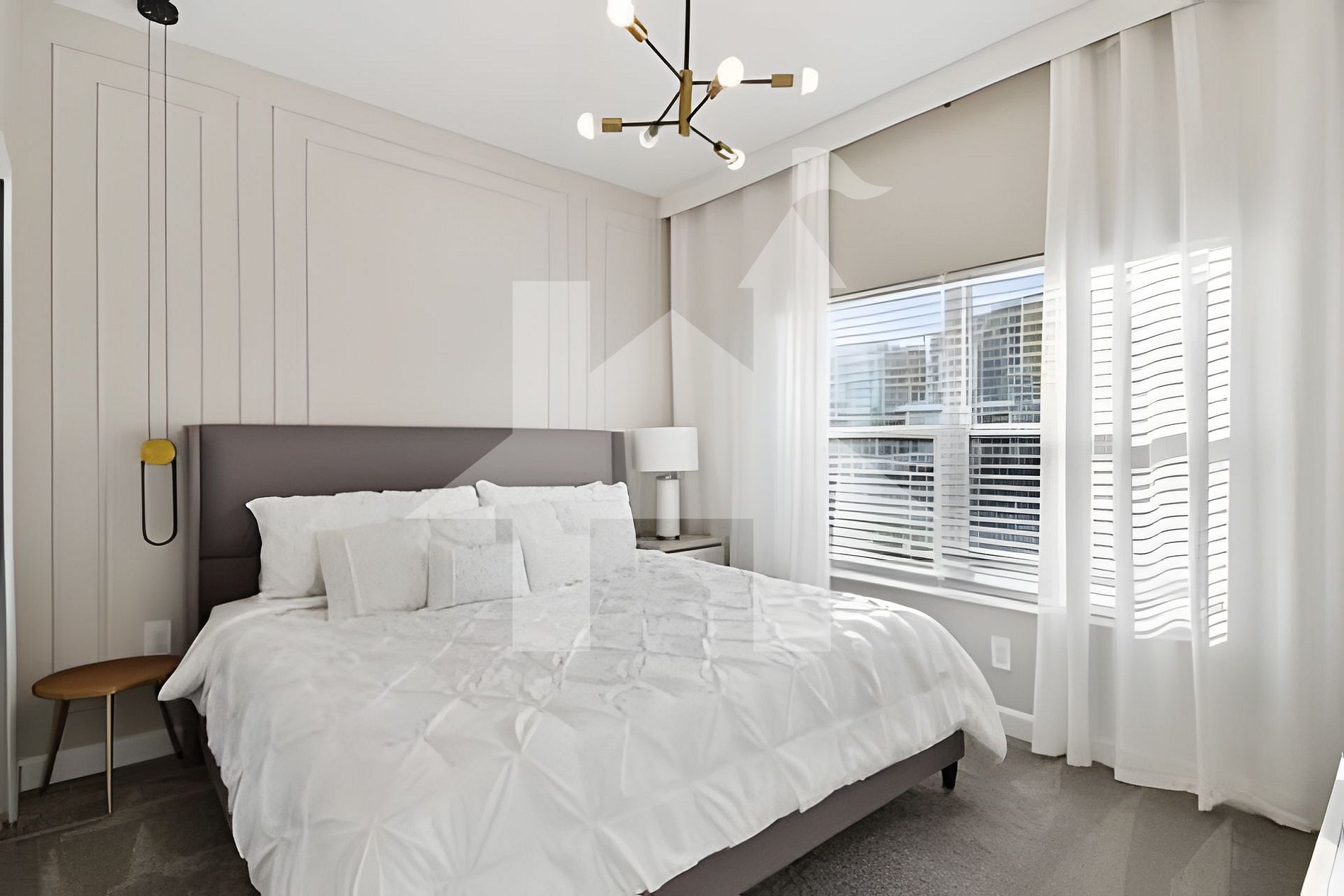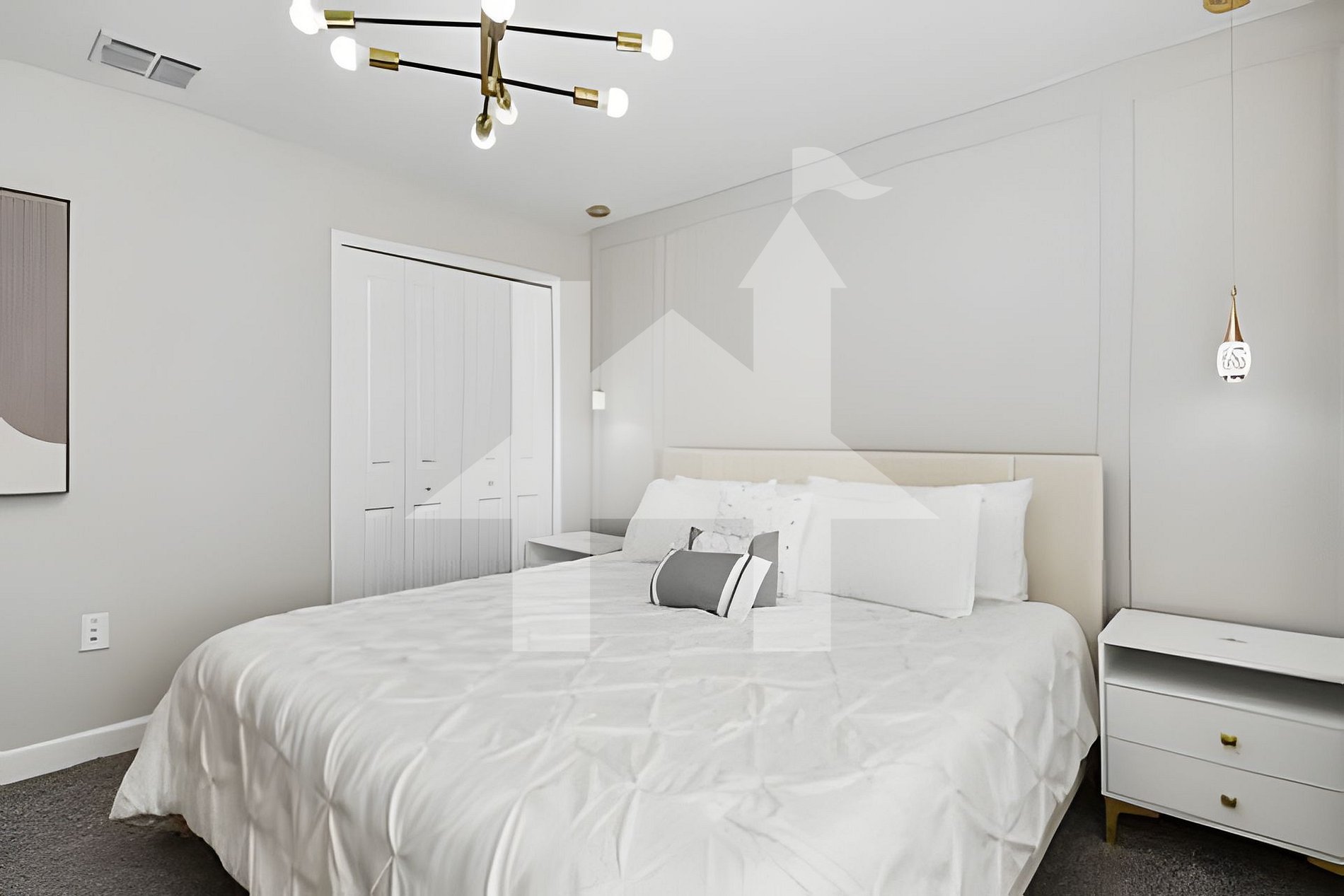 Bedroom 1: Queen bed + Smart TV, shared full bathroom