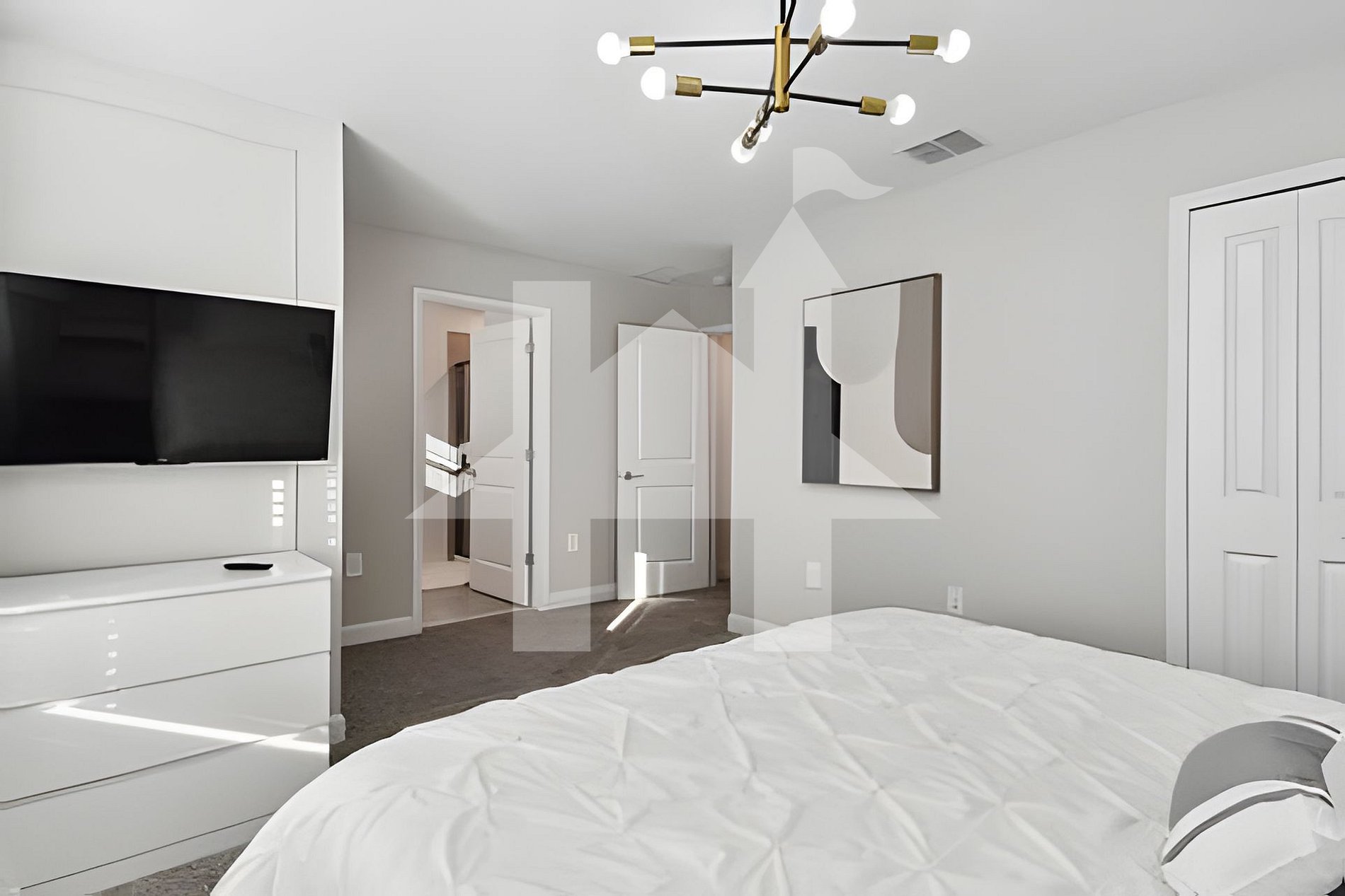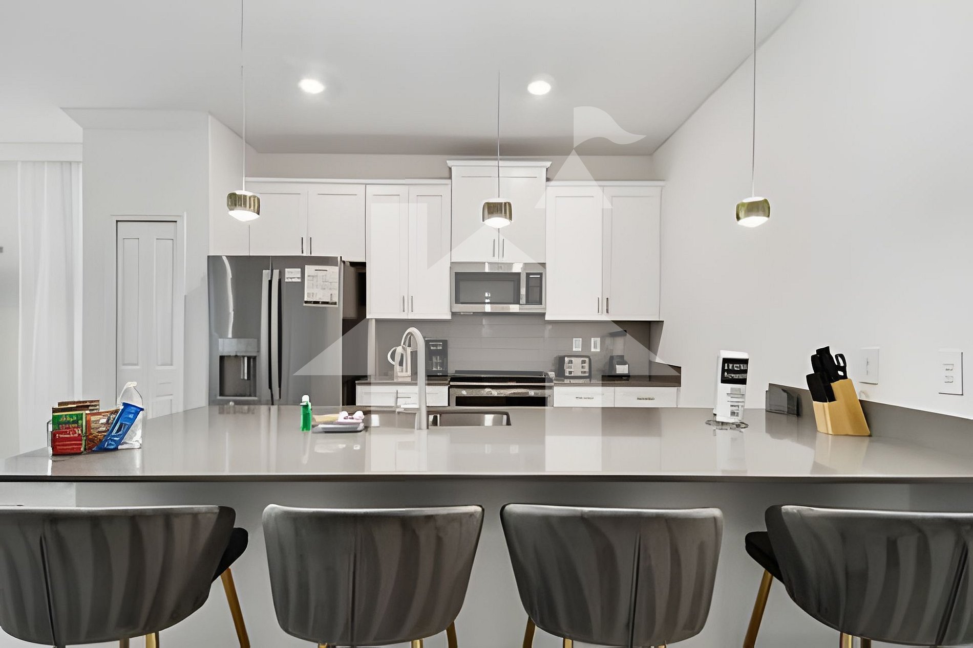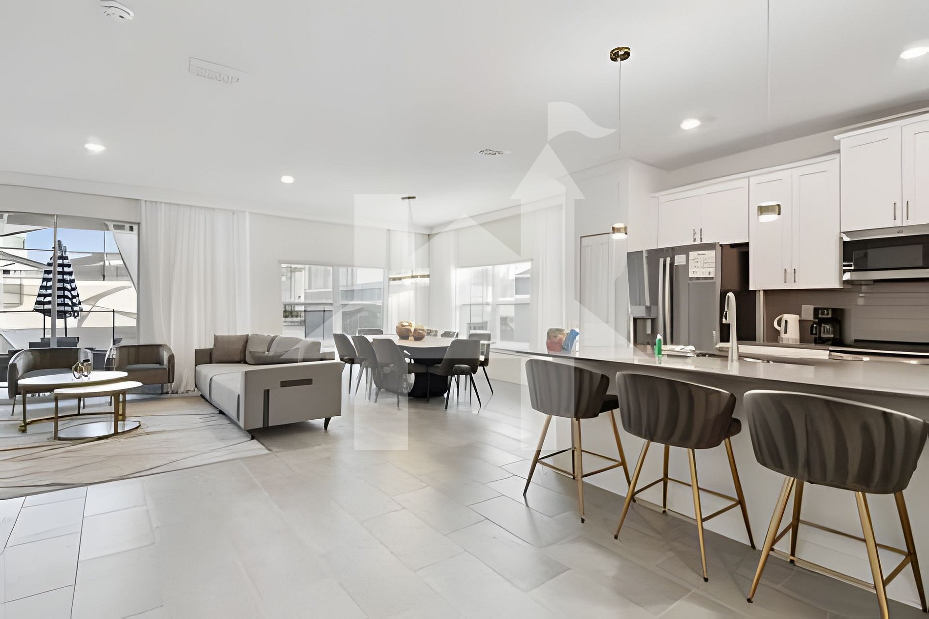 Enjoy your Orlando vacation at this stylish 5BR, 4BA townhome with two master suites, private heated pool, BBQ, and access to Storey Lake’s 5-star resort amenities. Relax at the lazy river, tiki bar, or sports courts—all just 15 minutes from Disney! Free Wi-Fi, fully equipped kitchen, self check-in with door code, and family-friendly design make this home the perfect choice for your stay.