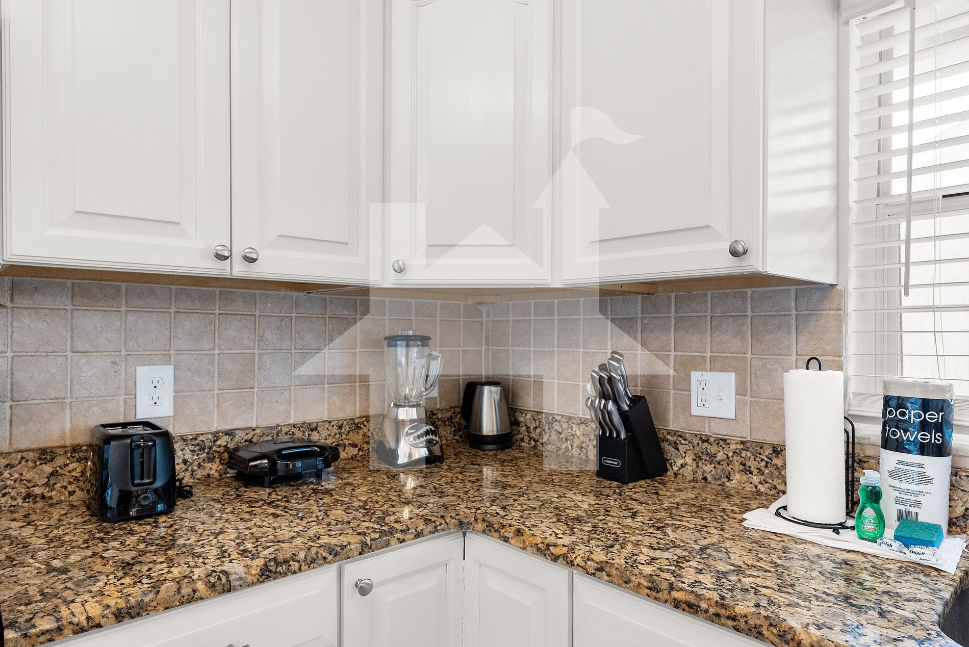 Prepare meals with ease in the fully equipped kitchen, featuring a fridge, microwave, stove, dishwasher, coffee maker, blender, toaster, waffle maker, and even a rice cooker. Kid-friendly plates and bowls included.