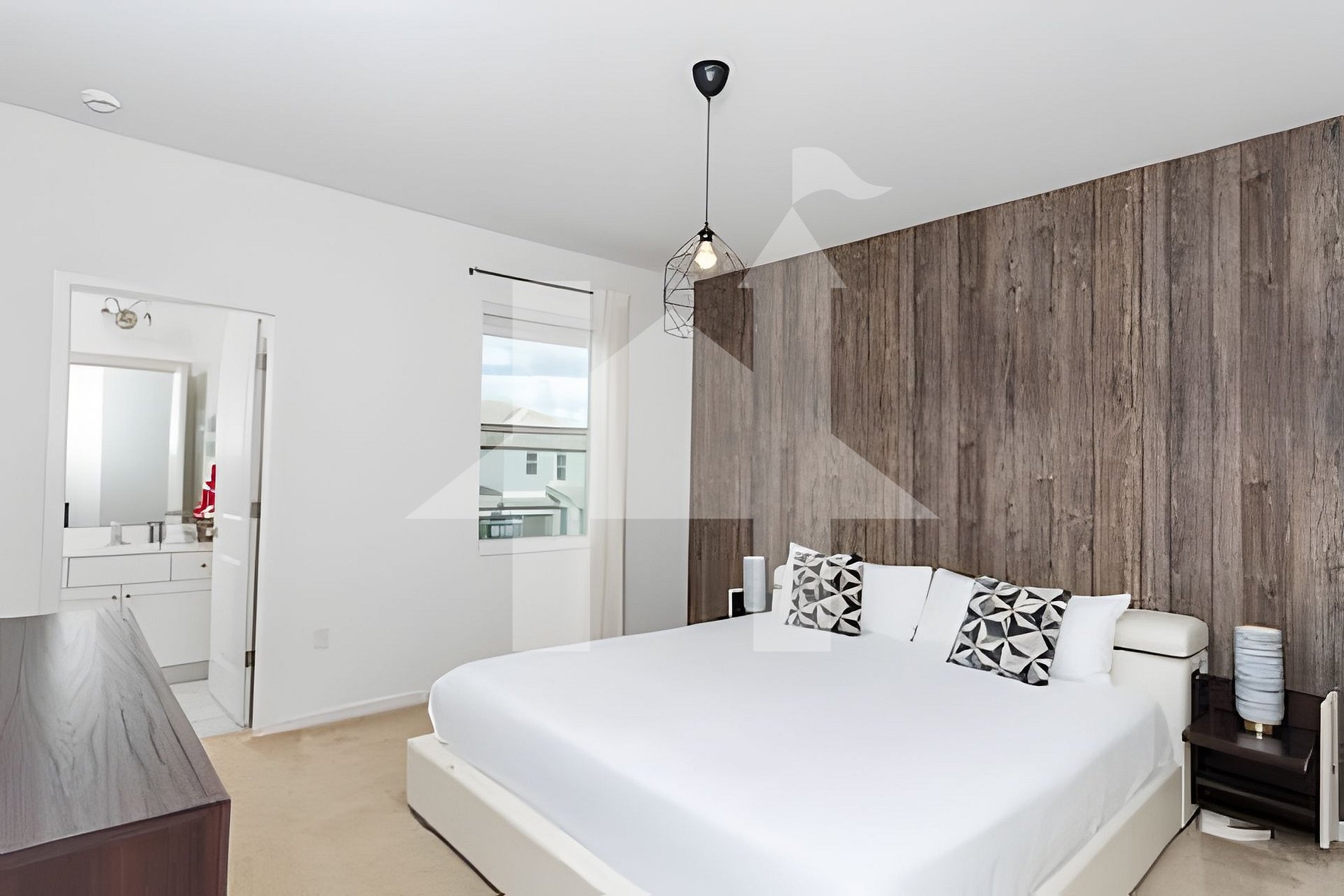 Bedroom 4 (Second Floor): King bed, en-suite with walk-in shower & double sink, TV, ceiling fan.