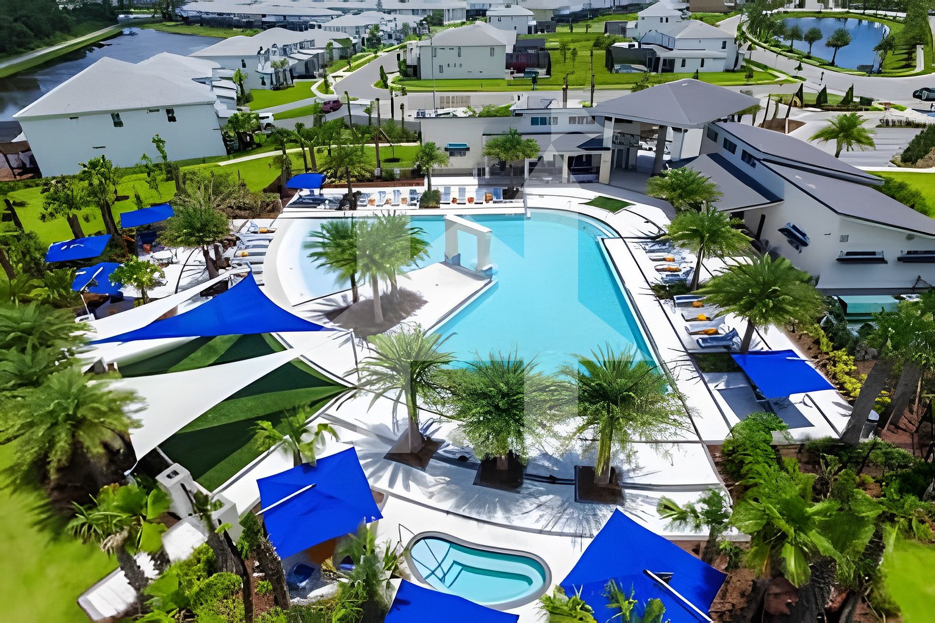 The resort features a clubhouse, fitness center, community pool, and recreational areas for all guests.