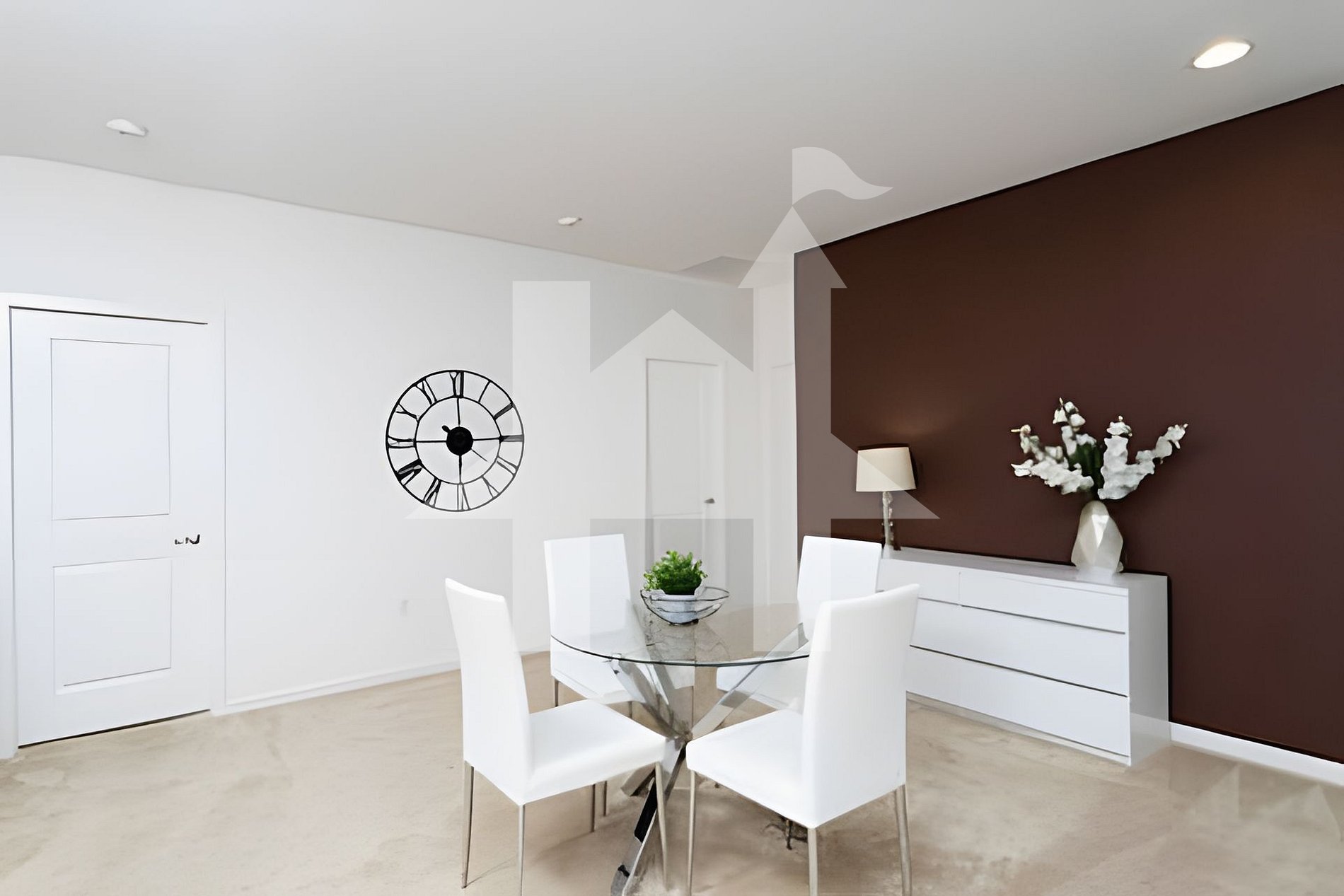 Open-concept living, dining, and kitchen with elegant designer furnishings.