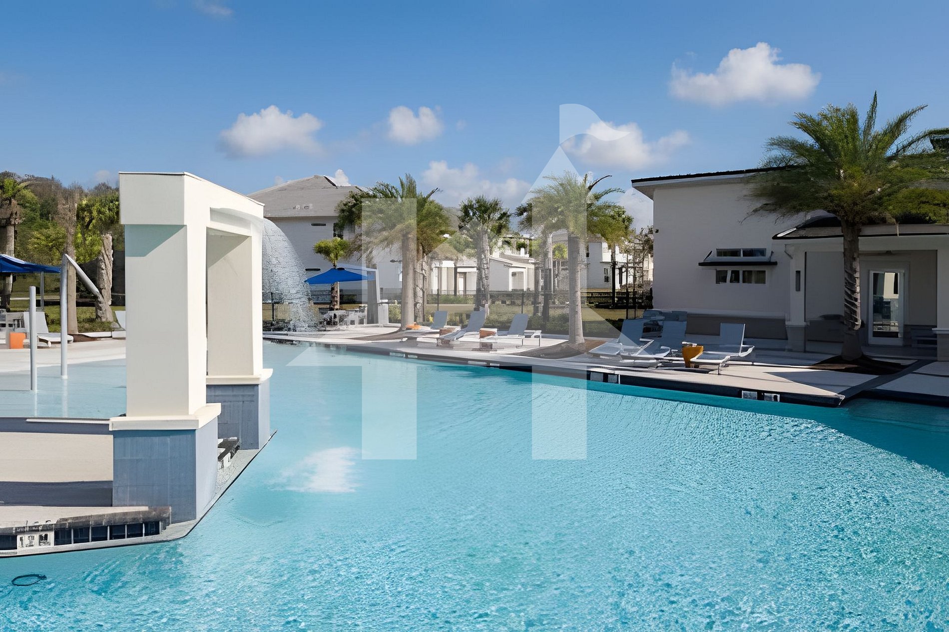 The resort features a clubhouse, fitness center, community pool, and recreational areas for all guests.