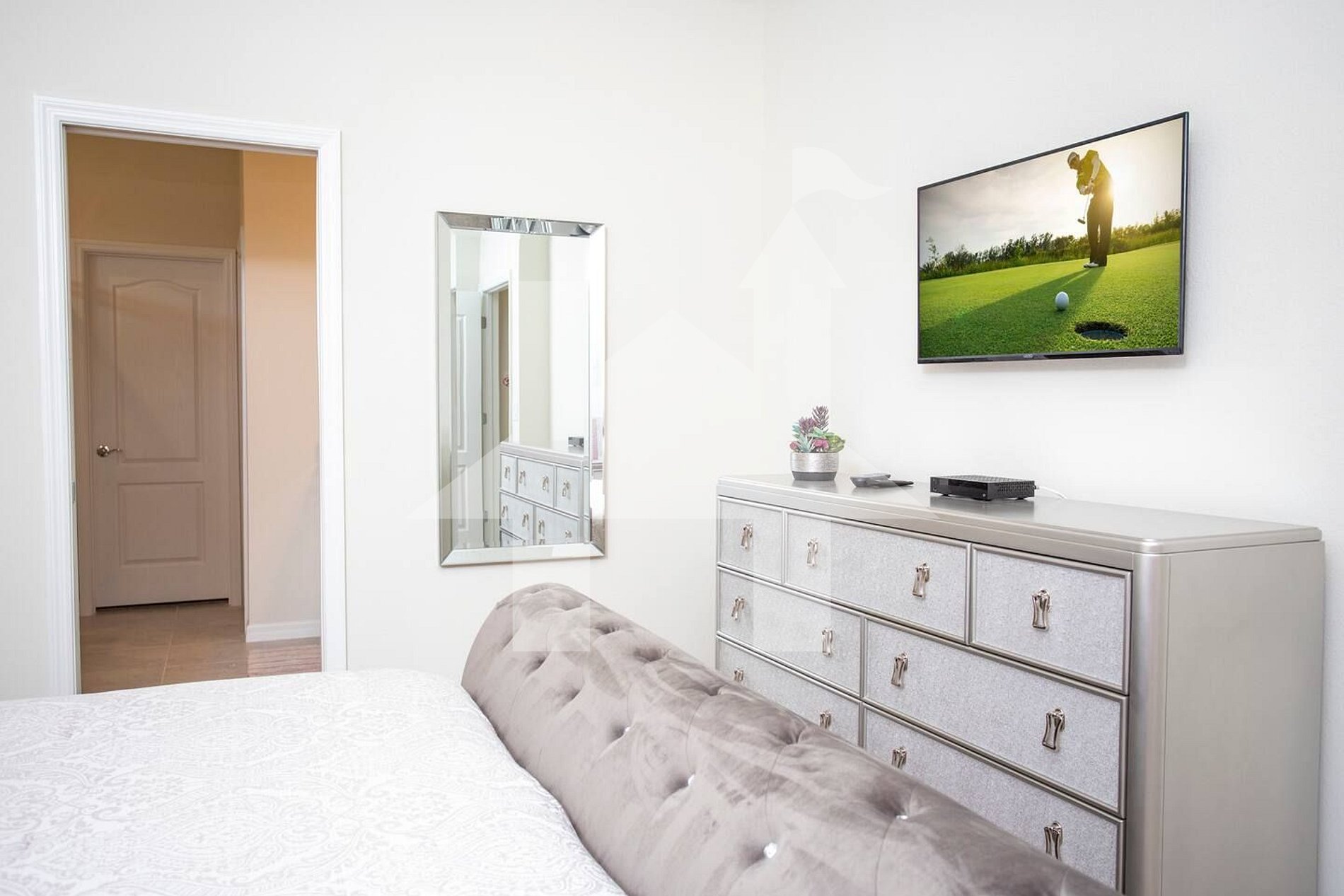 Located in the prestigious Solterra Resort, Villa Batista blends luxury with themed fun. This spacious 5-bedroom, 5-bathroom villa accommodates up to 11 guests and features a private pool, Star Wars game room, and multiple themed kids’ bedrooms. Just 15 minutes from Disney, it's the perfect getaway for families and friends.