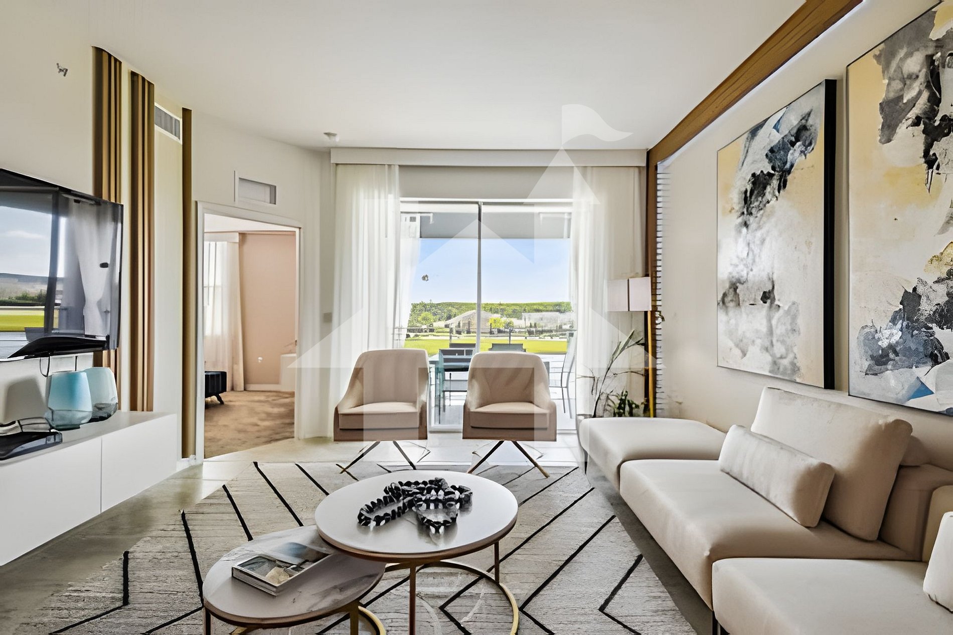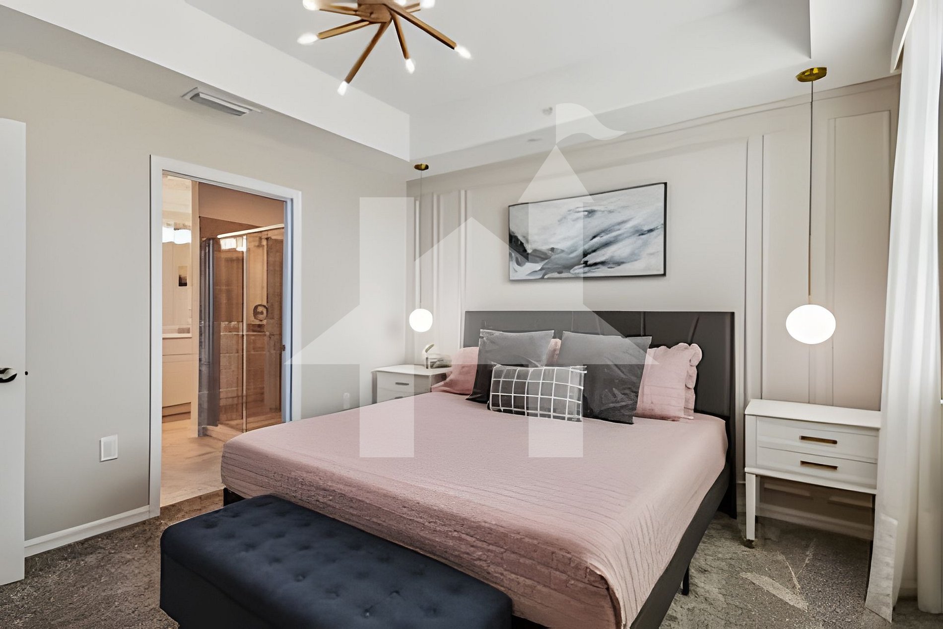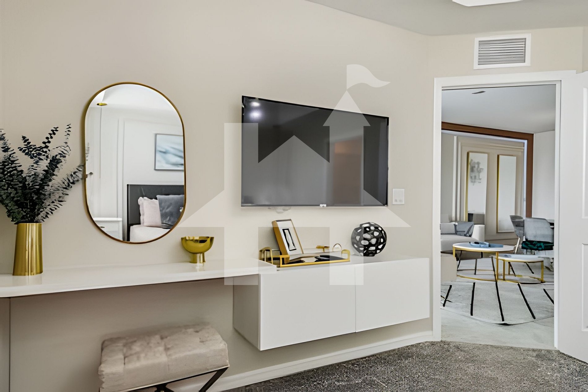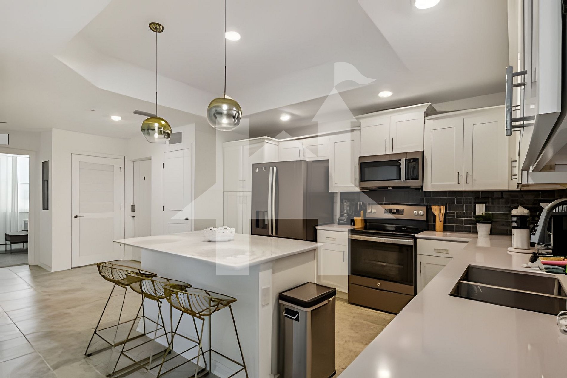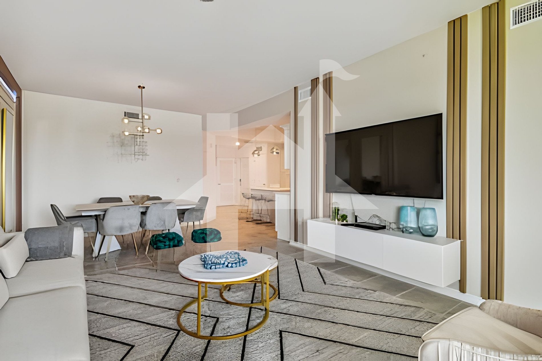 Inside the Condo Living Room: Spacious with a 65” Smart TV, 6-seat sofa, and access to a screened balcony. Dining & Kitchen: Dining table for 6 + breakfast bar for 2. Fully equipped kitchen with modern appliances. Bedrooms: Master Suite: King bed, Smart TV, private bathroom. Queen Bedroom: Queen bed, Smart TV, shared bathroom. Mickey-Themed Bedroom: Bunk bed (Full + Twin), Smart TV, shared bathroom.