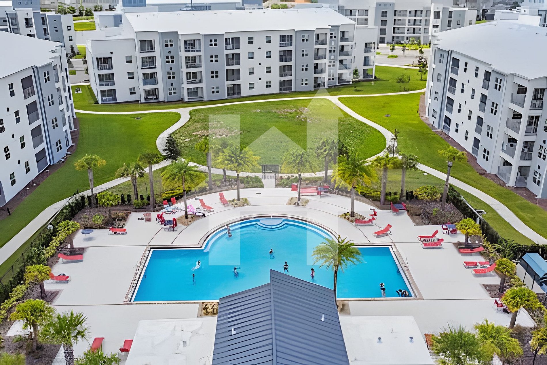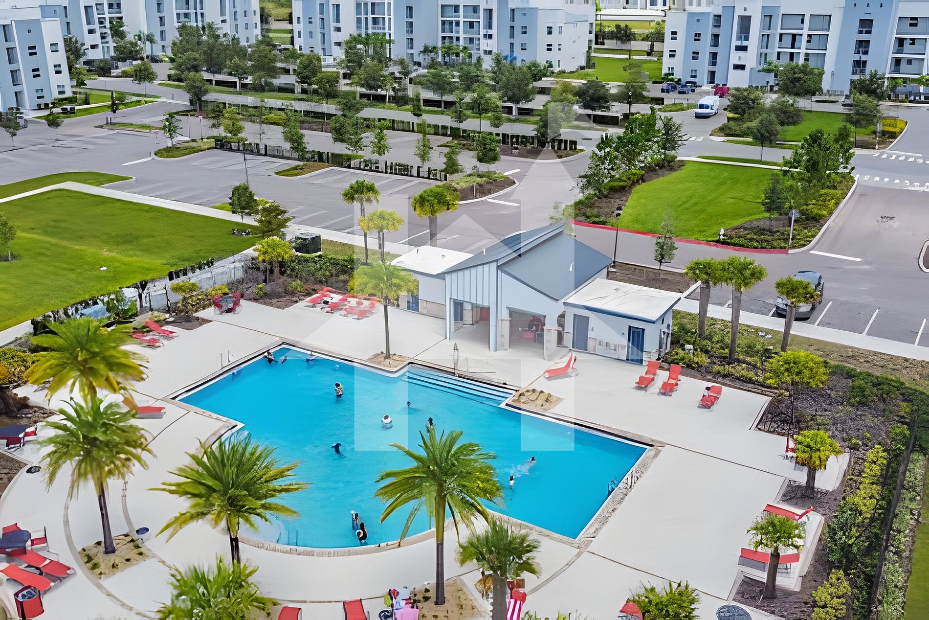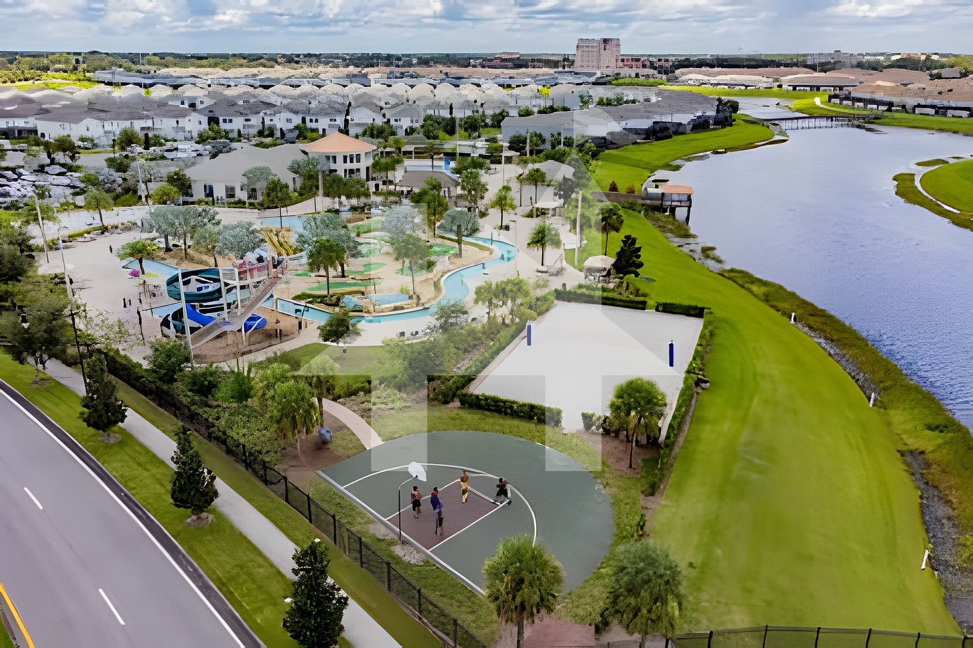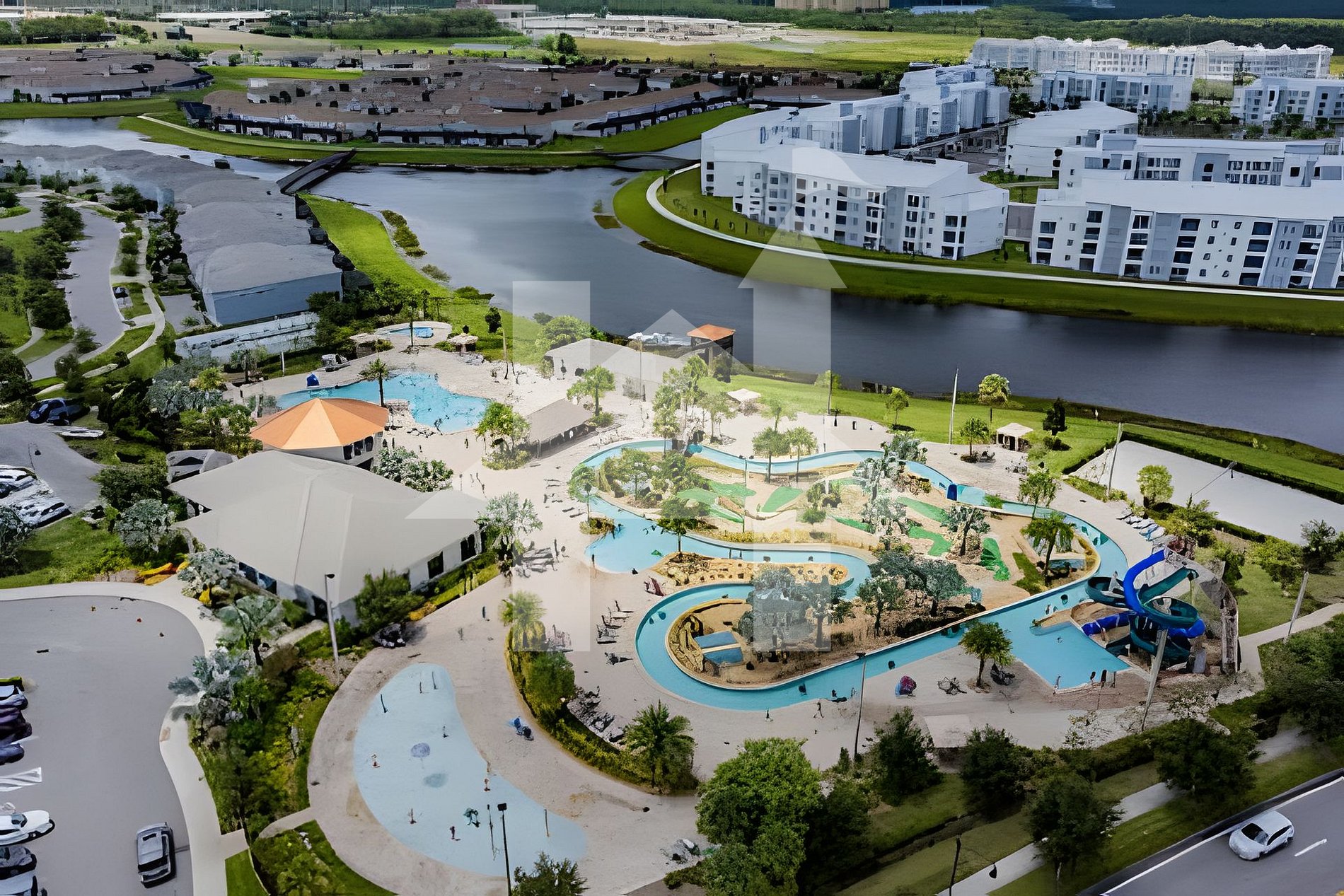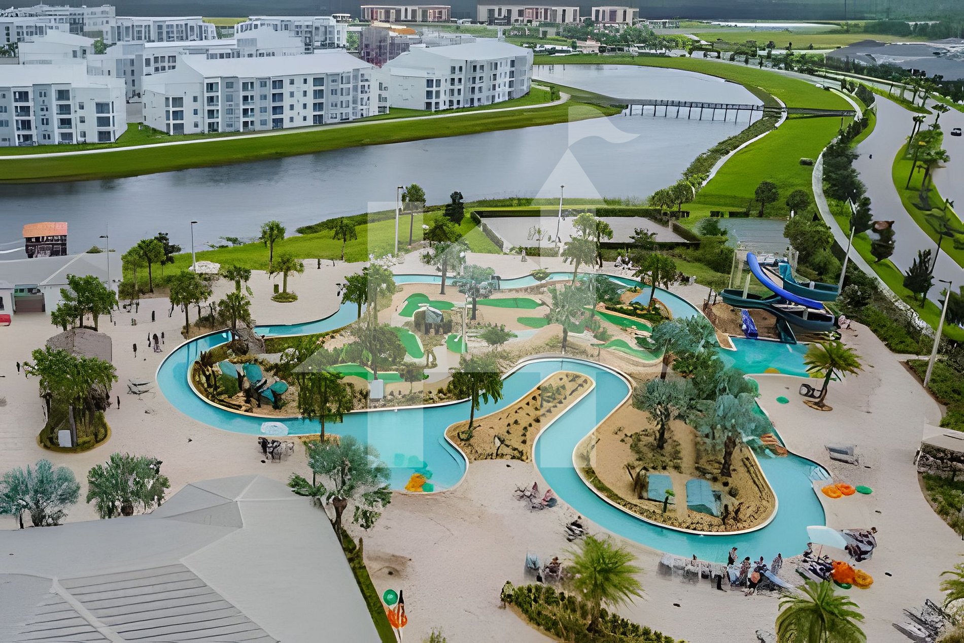 Resort Amenities Clubhouse with fitness center, business center, and spa Lazy river, splash park, playground, and mini golf Resort-style pools & hot tub Tiki bar with drinks & snacks Sports courts (volleyball, basketball, more)