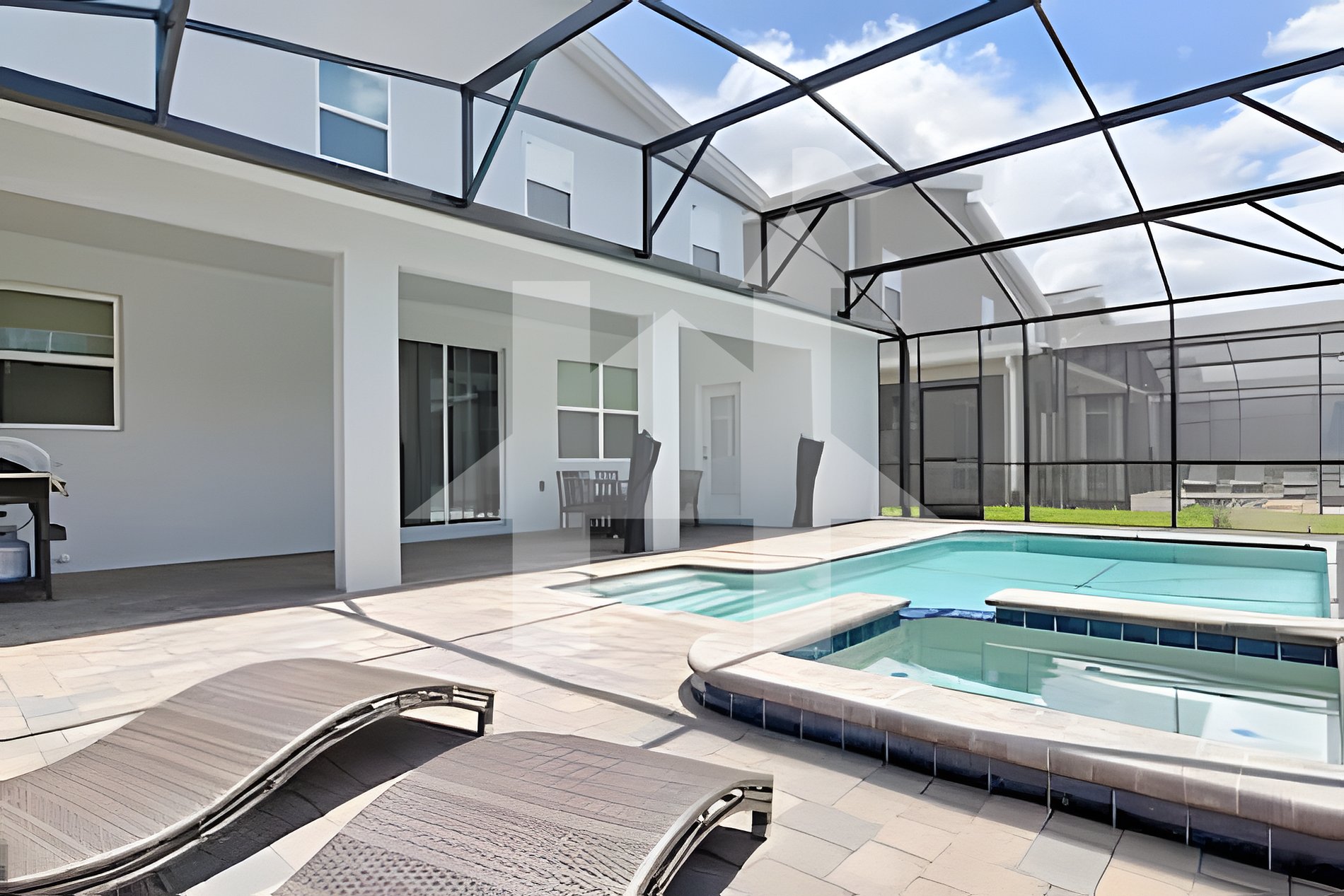 Step outside to your private pool and spa, surrounded by a screened deck ideal for relaxing in the Florida sun or enjoying an alfresco dinner. The home also includes a modern open-concept living area, fully equipped kitchen, and private bathrooms for added comfort and convenience.
